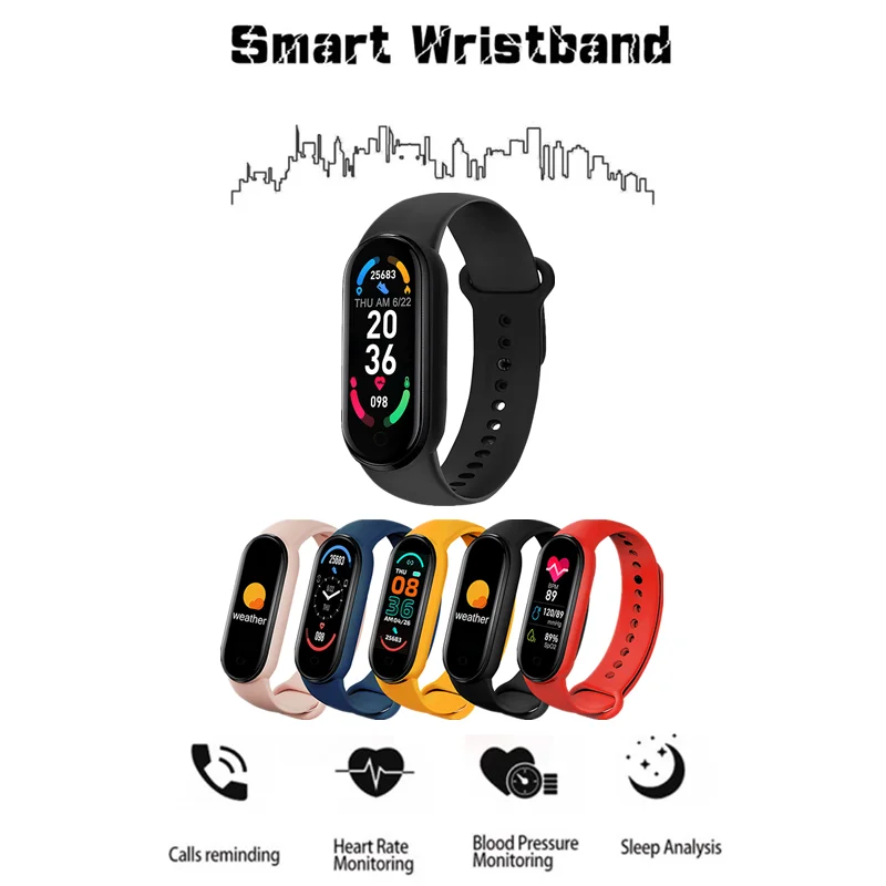 Смарт-браслет M6, водонепроницаемый, IP67, пульсометр, тонометр, шагомер, монитор сна