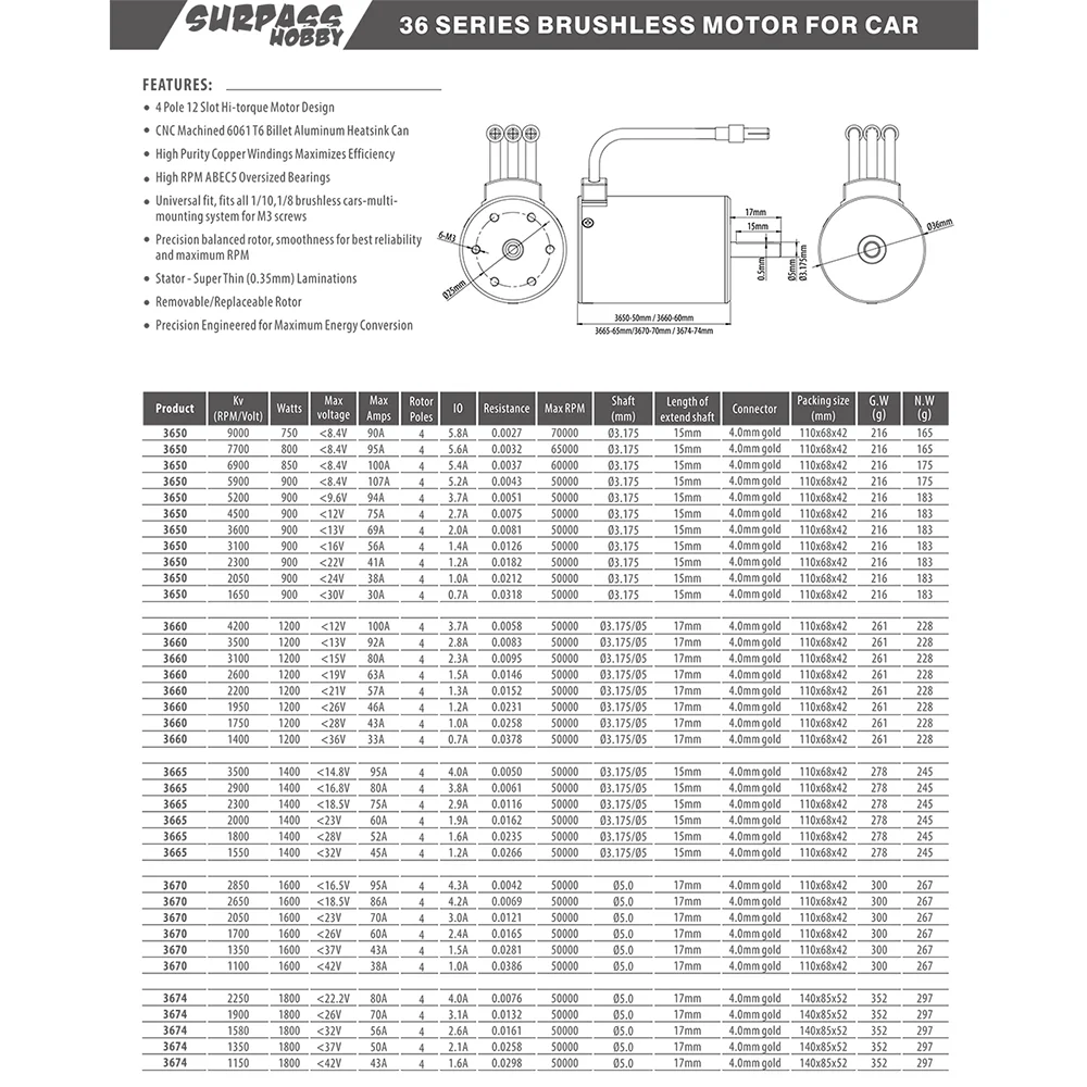 SURPASS HOBBY Водонепроницаемый 3660 бесщеточный двигатель для Traxxas Slash HSP HPI с дистанционным управлением Kyosho 110 112 RC автомобиль багги-монстр