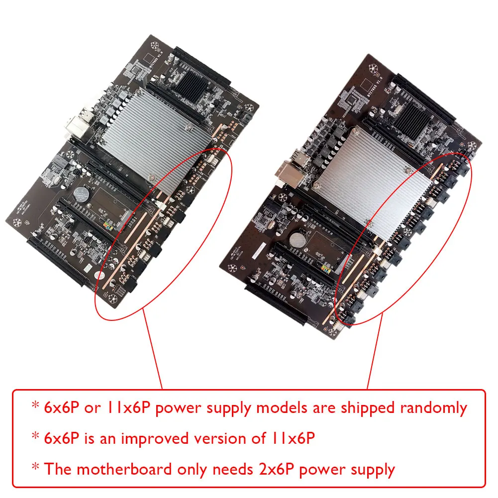 Модели питания 6x6P или 11x6P поставляются случайным образом! (6x6P являются улучшенными версиями, а материнской плате требуется два 6Ps. Если источник питания видеокарты достаточно непосредственно, он будет напрямую подключен к источнику питания, и нет необходимости передавать его сюда; если источника питания недостаточно для интерфейса источника питания видеокарты, вам нужно использовать патч-корд, Один конец подключен к источнику питания, один конец подключен к материнской плате и один конец подключен к видеокарте).