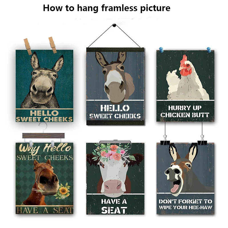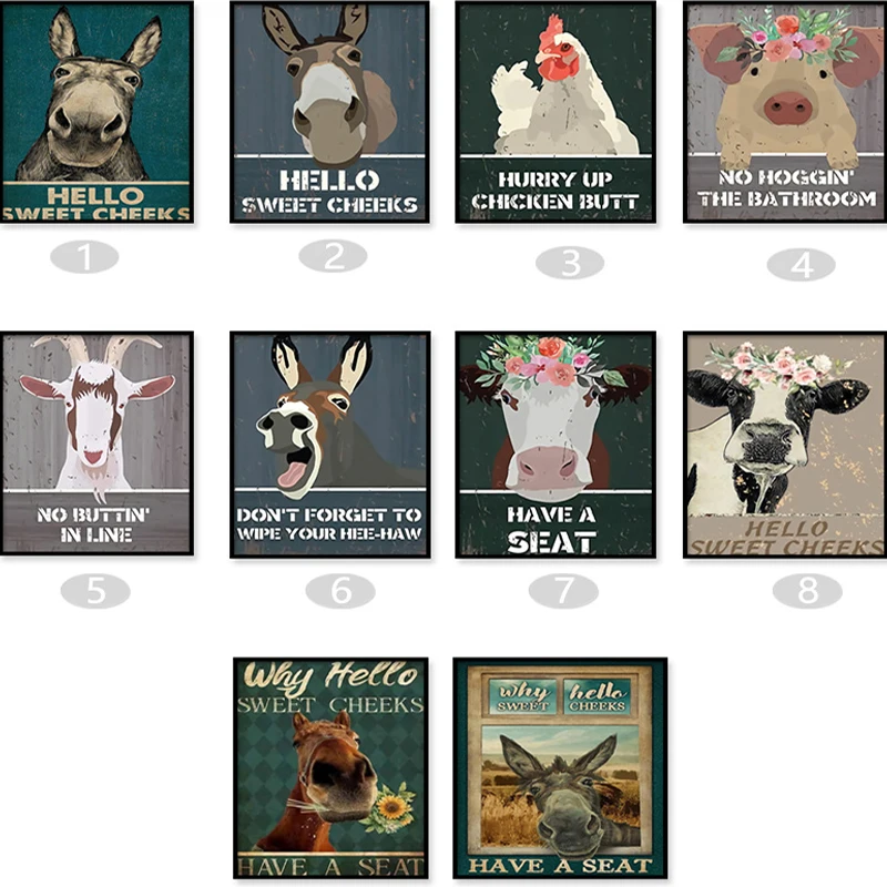 Картина маслом на холсте, с изображением осла, коровы, свиньи, козы, фермы, животных, постеры и принты в скандинавском стиле, ретро-картины для гостиной
