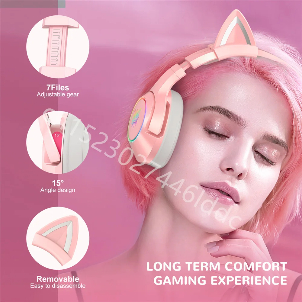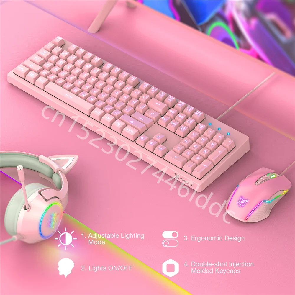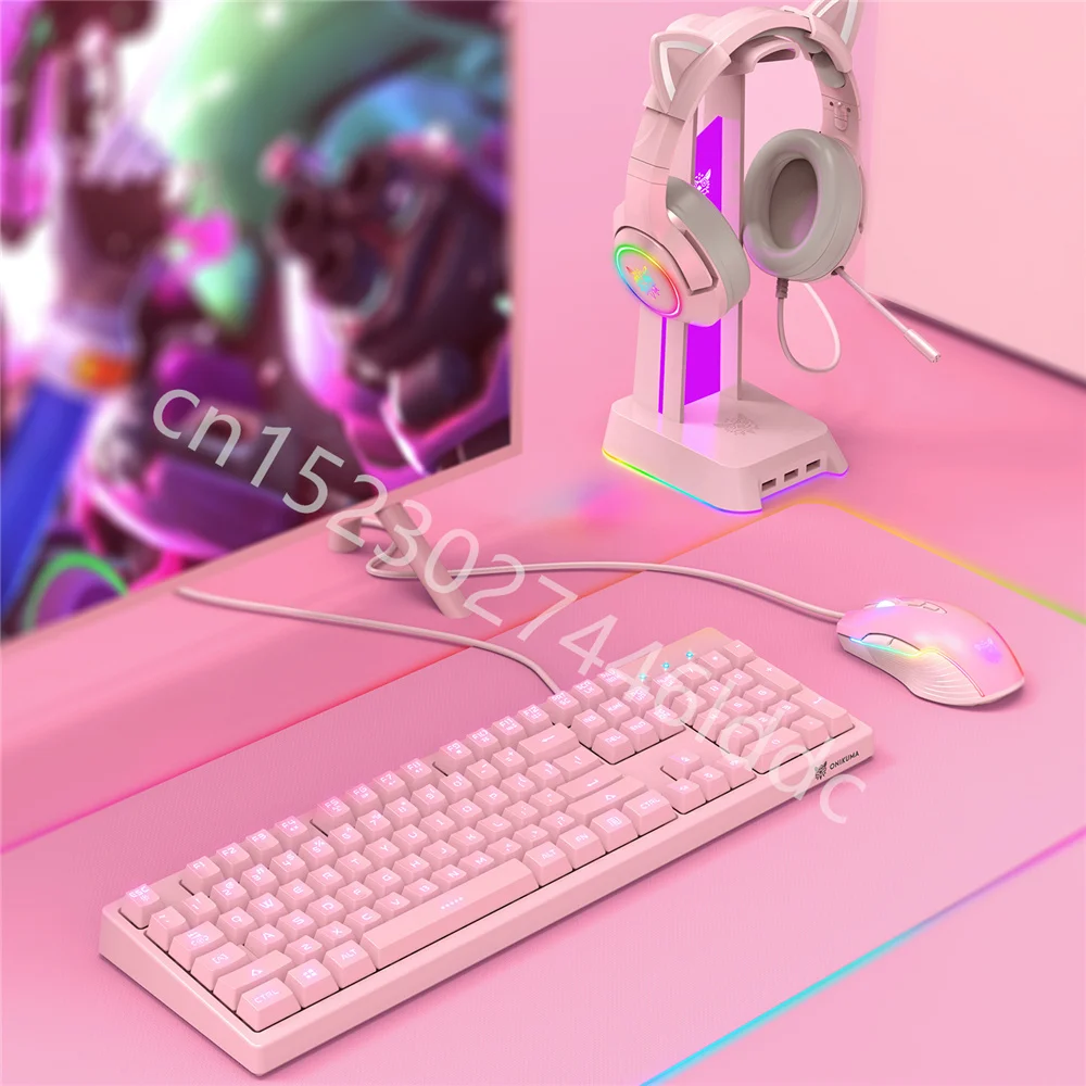 Игровая клавиатура ONIKUMA G25, проводная розовая мышь CW905, 6400 DPI, K9, милая гарнитура с кошачьими ушками для ПК, ноутбука
