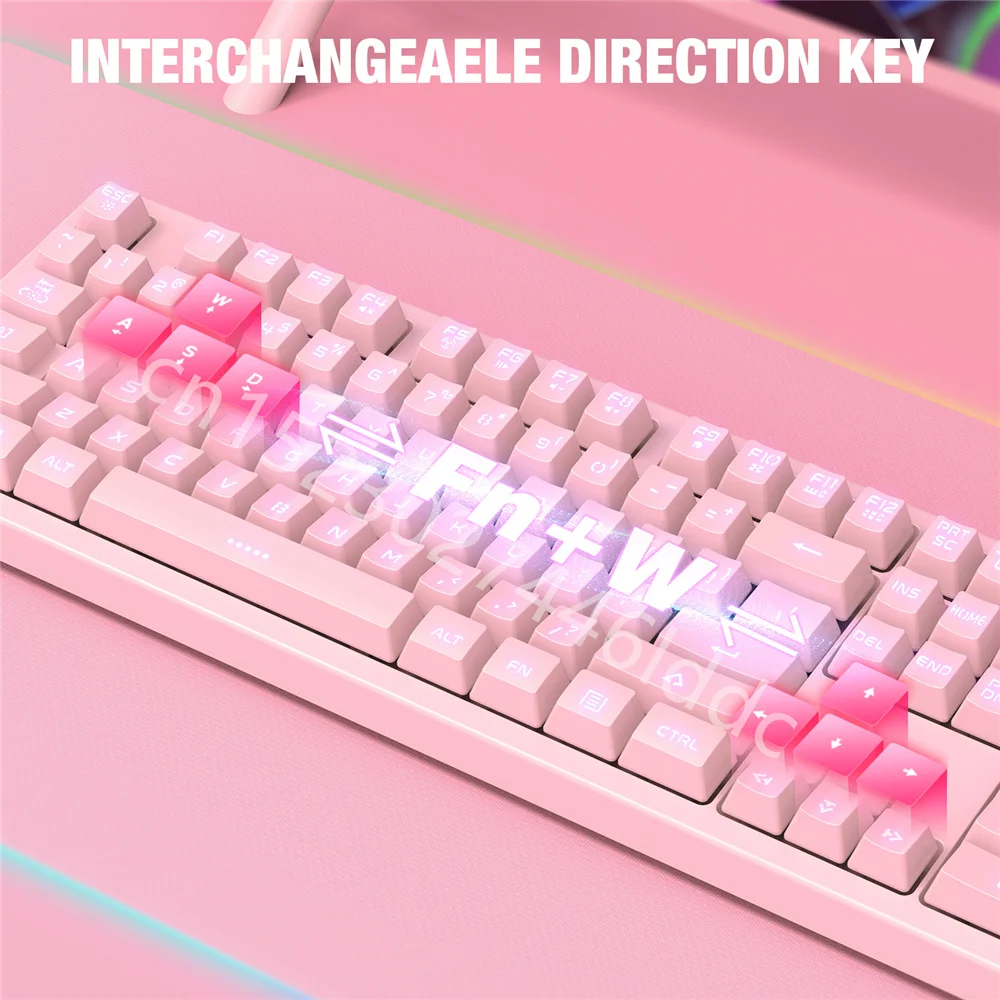Проводная игровая клавиатура и мышь ONIKUMA G25, розовая, CW905, 6400 DPI