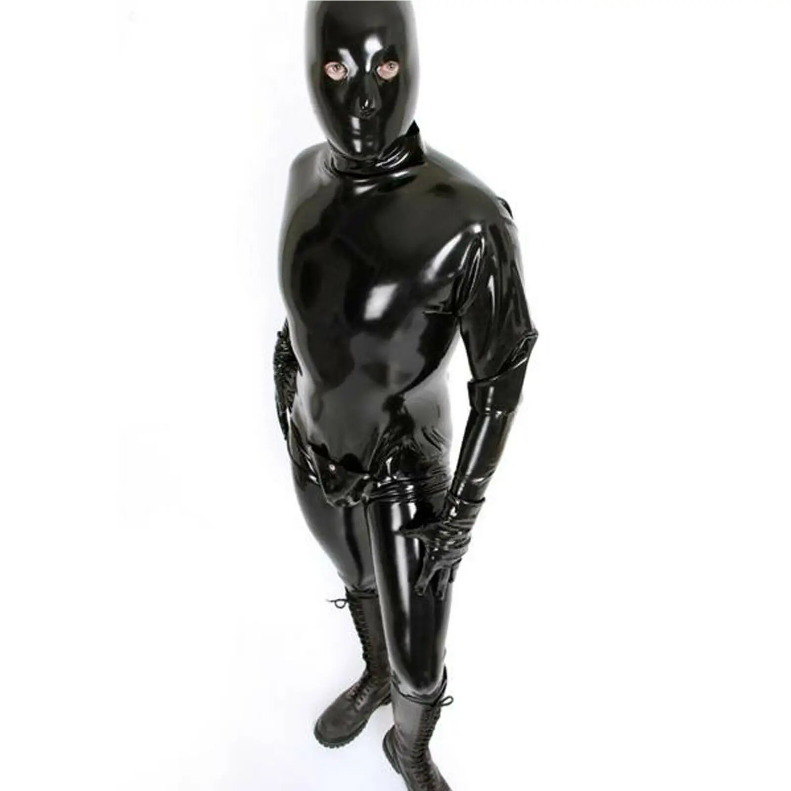100% латексный резиновый боди Ganzanzug, Черный боди на молнии, 0,4...