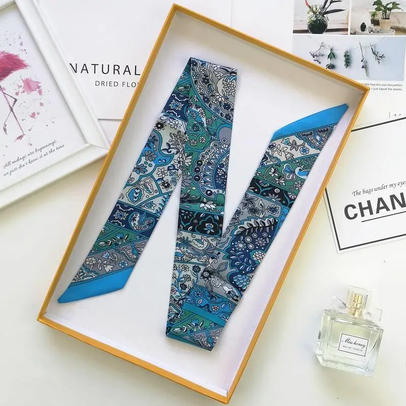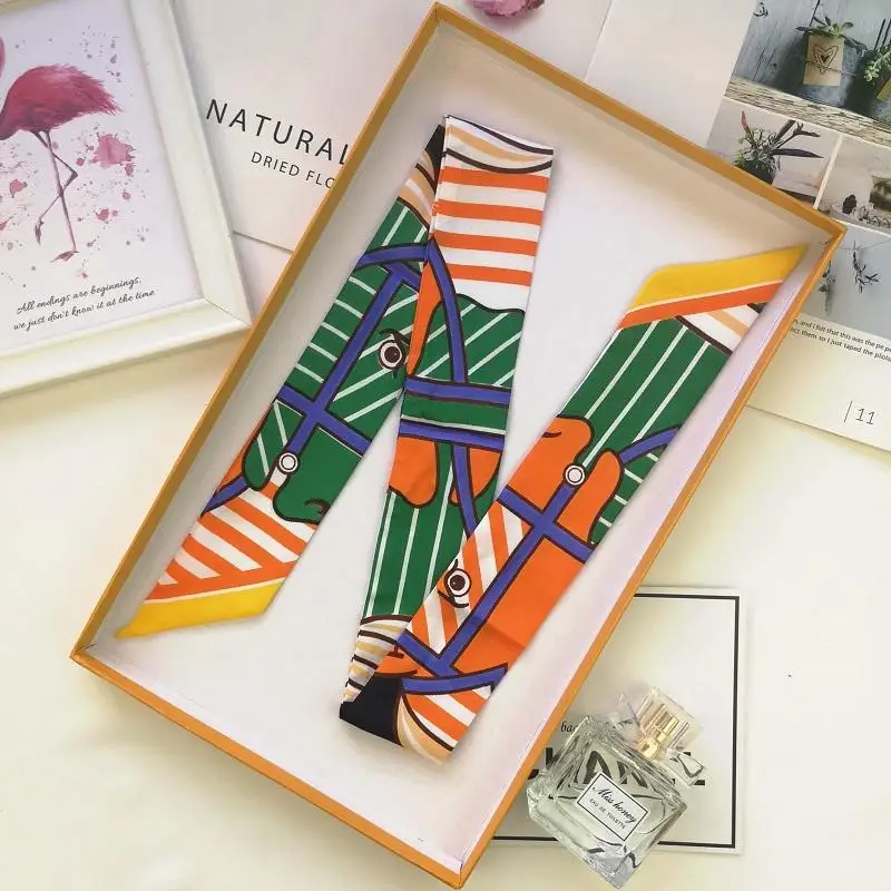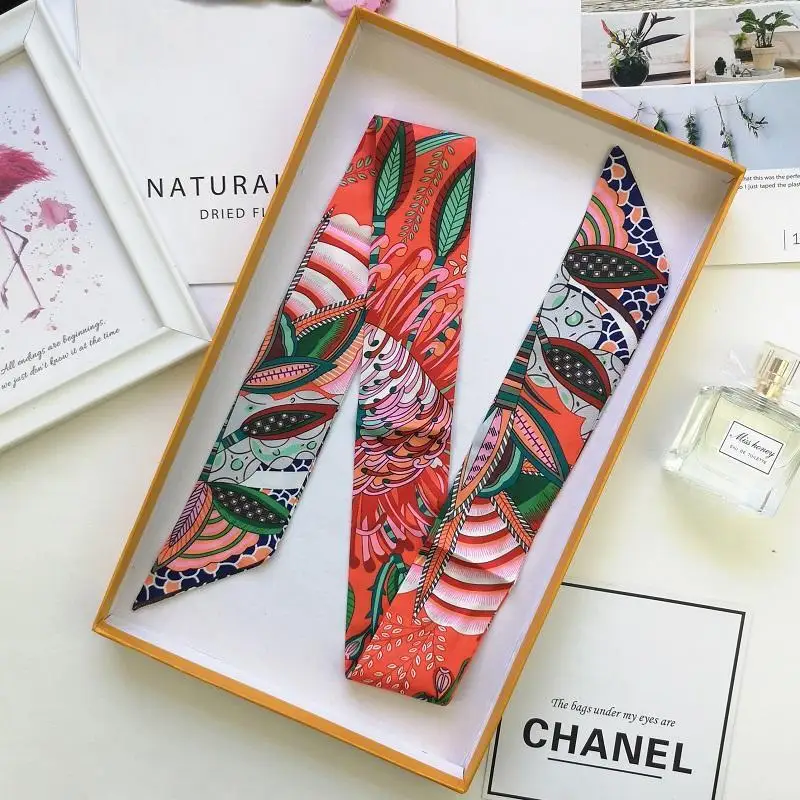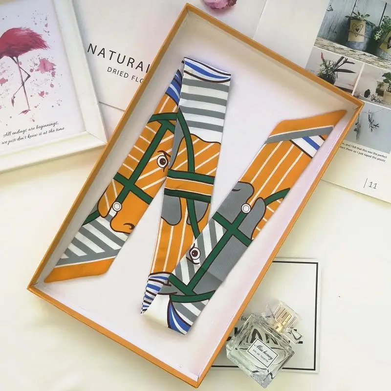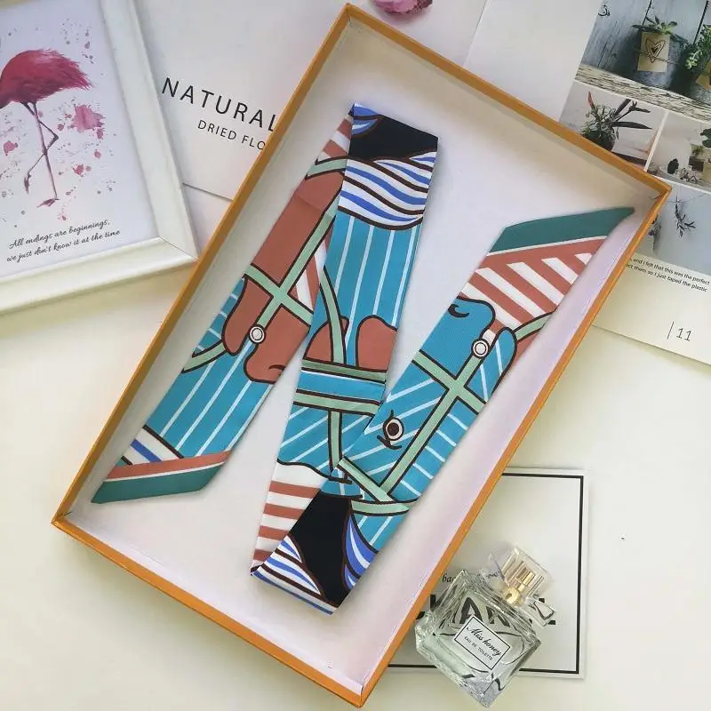 Маленький шелковый шарф, топ, женская рубашка, украшение для галстука, корейский шарф, модный роскошный брендовый женский шарф для волос на шею, накидка, сумка, лента
