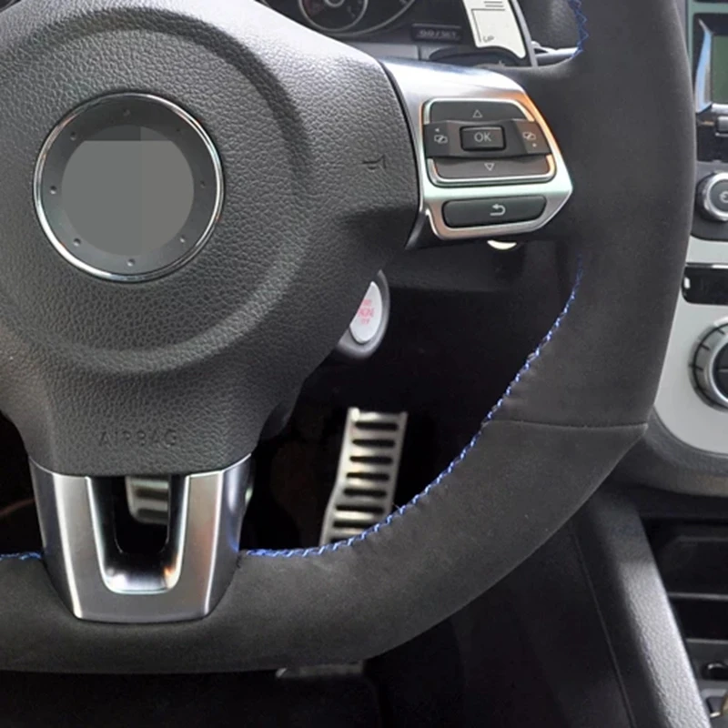 Рука сшитый на нескользящей подошве черная замша чехол рулевого колеса автомобиля для Volkswagen Golf 6 GTI MK6 Polo GTI Scirocco R Passat CC