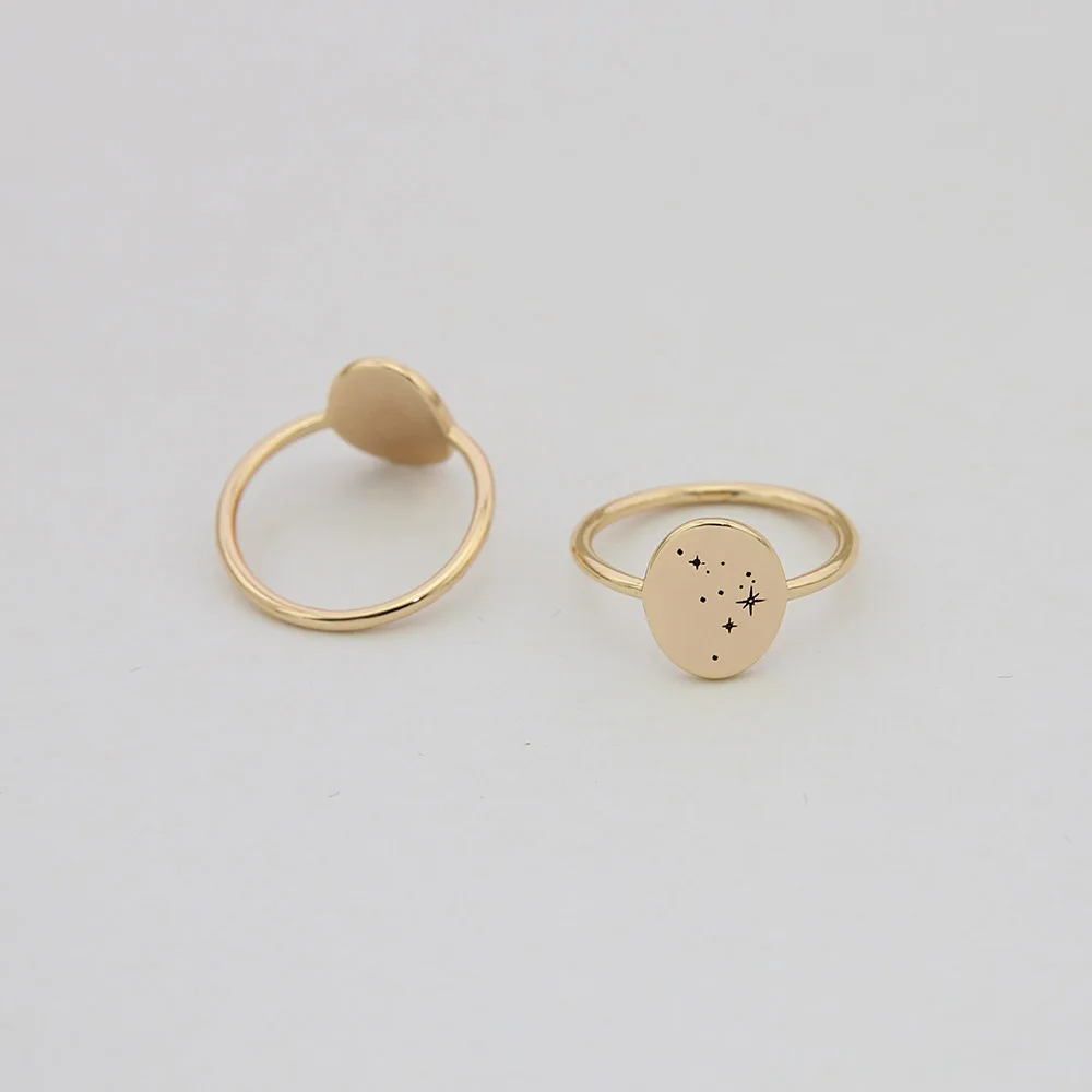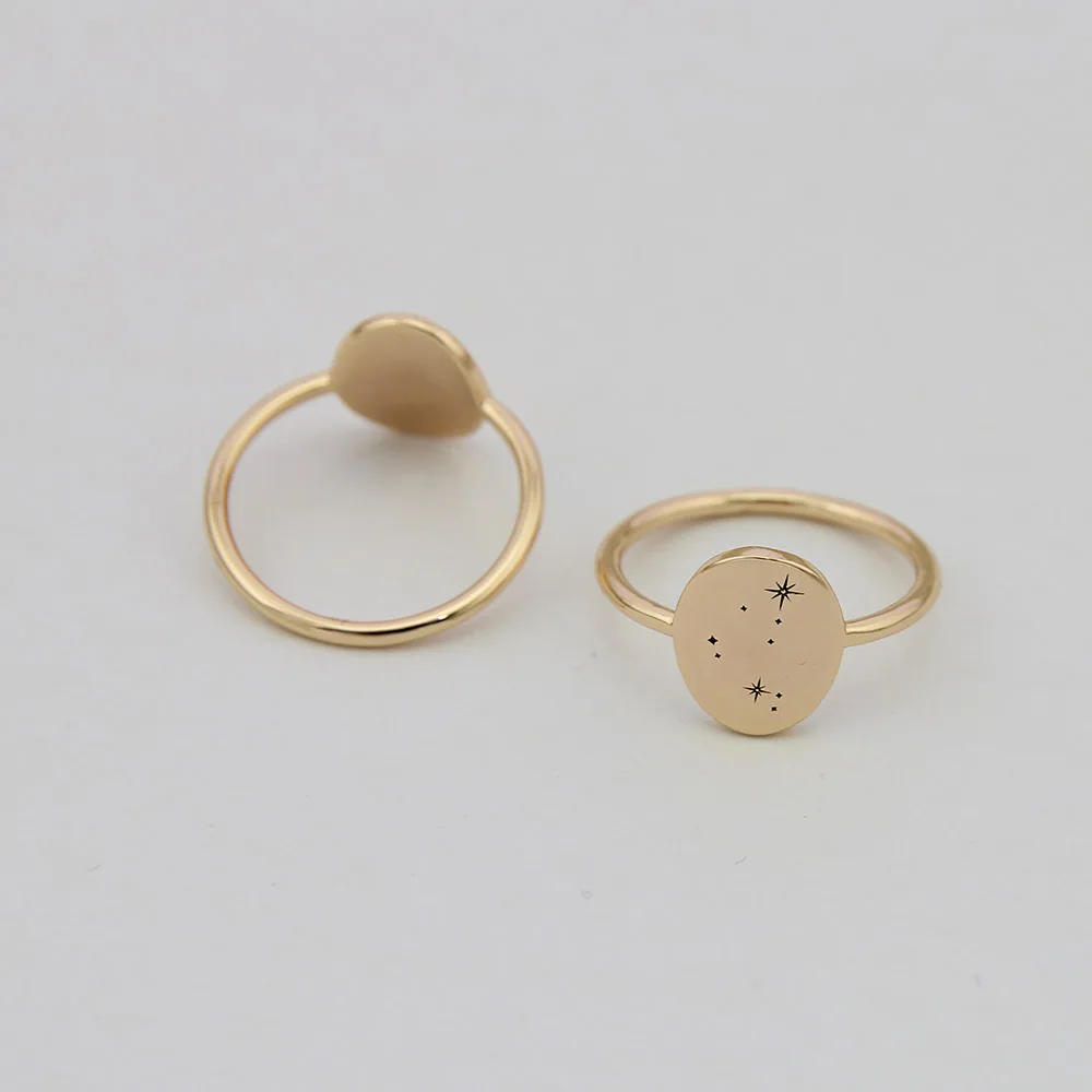 Изящное овальное кольцо Zodia, позолоченное кольцо с гравировкой для женщин, подарок