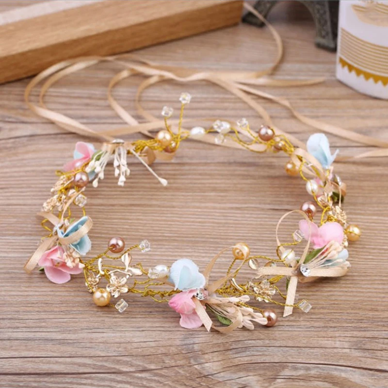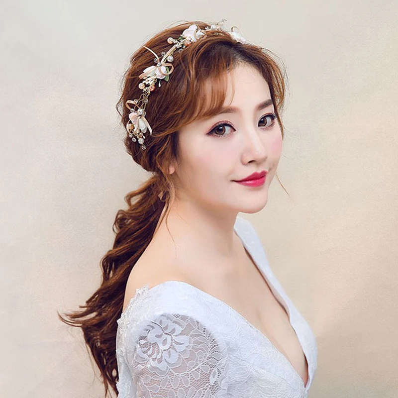 Свадебные аксессуары для волос, повязка на голову из сплава с кристаллами и цветами, роскошная Жемчужная Повязка Для Волос золотого цвета, женские аксессуары для волос для девочек