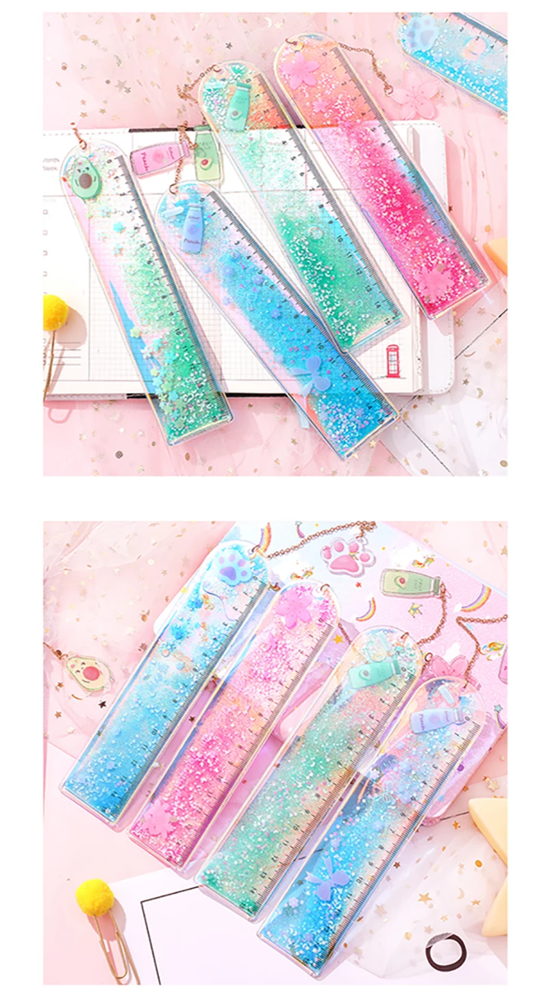 Kawaii Кот вишни закладки 15 см линейка Блестящий зыбучий песок Книга знак для детей подарок школьные канцелярские принадлежности