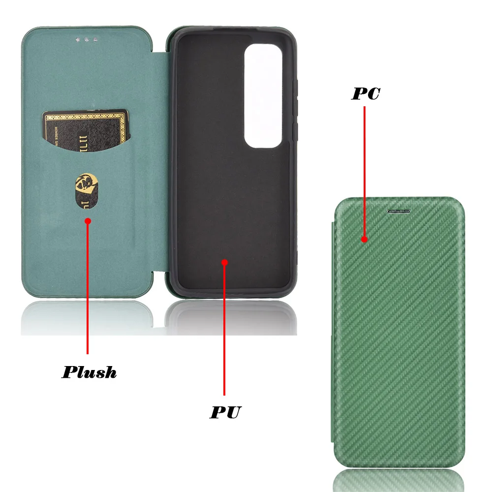 Чехол для Xiaomi Mi 11 Lite, флип-чехол из углеродного волокна с ма...