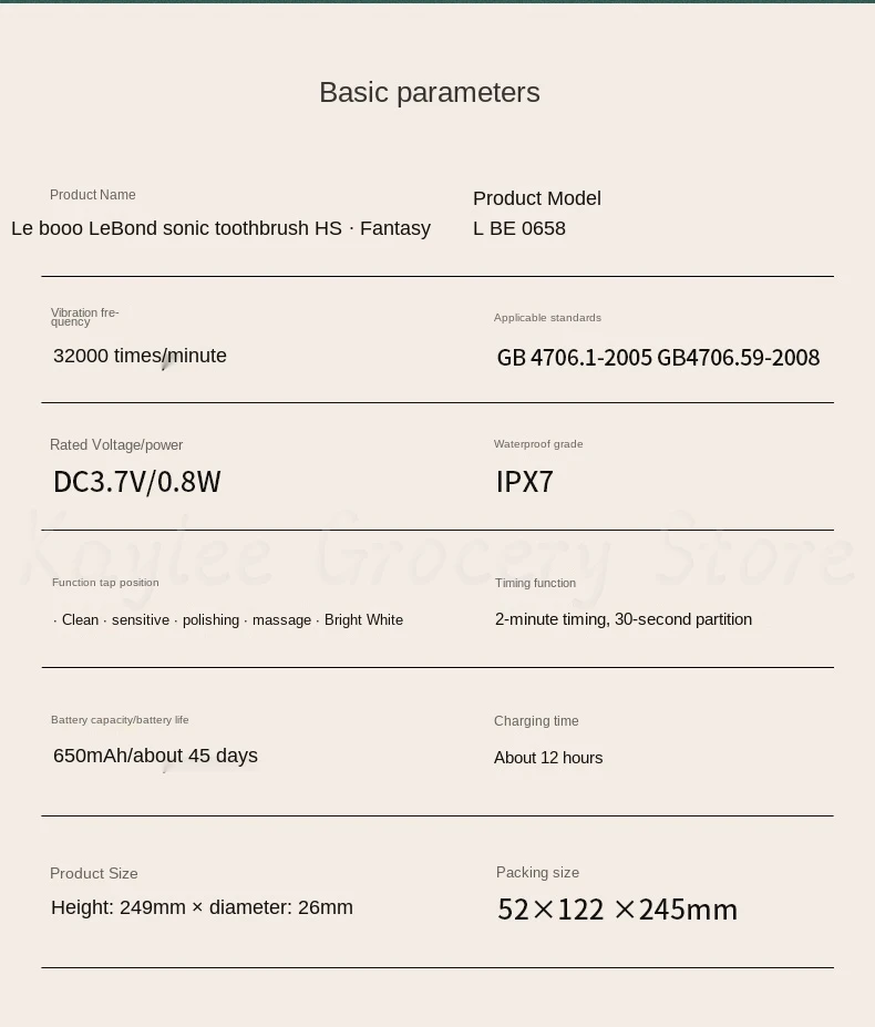 Аккумулятор имеет 45 дневный срок службы батареи с высокопроизводительной литиевой батареей. Он имеет длительный срок службы батареи и очень удобен для путешествий.32000 раз/мин высокочастотная вибрационная мощная очистка, дайте зубной пасте и воде образовывать многочисленные микропузырьки во рту, эффективно Очистите поверхность зуба и зазор зуба.Режим чистки пяти зубчатых щеток, чтобы удовлетворить потребности различной ротовой полости, очистки, чувствительной, полировки, массажа, ярко-белого пяти зубчатого ключа, чтобы удовлетворить потребности различного комфорта полости рта.Интеллектуальная синхронизация равномерное напоминание, каждые 30 секунд Вибрация мгновенная остановка, напоминаем вам изменить область очистки, сбалансированная очистка четырех полости рта, для достижения эффекта научной очистки.Пищевой FDA DuPont кисти должны быть осторожны, когда он соприкасается с полости рта. Головка кисти принимает щетинки DuPont, соответствующие стандарту FDA, с высокой плотностью посадки волос, и каждый из них округлен, чтобы избежать повреждения зубов и десен.Ipx7 водонепроницаемый, весь корпус не боится стирки, чтобы предотвратить попадание воды в интерьер тела, ванна также может быть использована легко.
