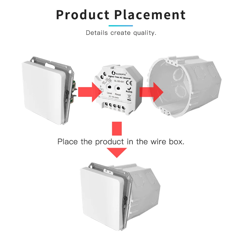 Несколько способов управления, приложение, голос, кнопочный переключатель, кнопка нажатия, пульт дистанционного управления 2,4G RF.◼Дизайн с затемнением задней кромки, защита от помех, мягкое включение/выключение питания, хорошо подходит для длительного использования света.◼Макс. 30 шт. пульты управления ZigBee через сопряжение сенсорного соединения.◼Абс огнестойкий материал оболочки, безопасный для применения.◼Конструкция винтовых клемм, простая и надежная для подключения.◼Мини размер дизайн, легко для установки в настенная коробка переключателей.Подходит для затемнения светодиодный свет/драйвера, лампы накаливания или высоковольтных галогенных ламп, LV, альтернатива галогенным лампам на приведенный в действие электронный трансформатор.◼Вход и выход с винтовыми клеммами, безопасный и надежный.◼Минимальный набор яркости, регулировка яркости от мин. до 100% полной яркости.Защита от отключения питанияЗащита от перегреваМожет быть подключена высокая мощность нагрузки (максимальная нагрузка не превышает 400 Вт)