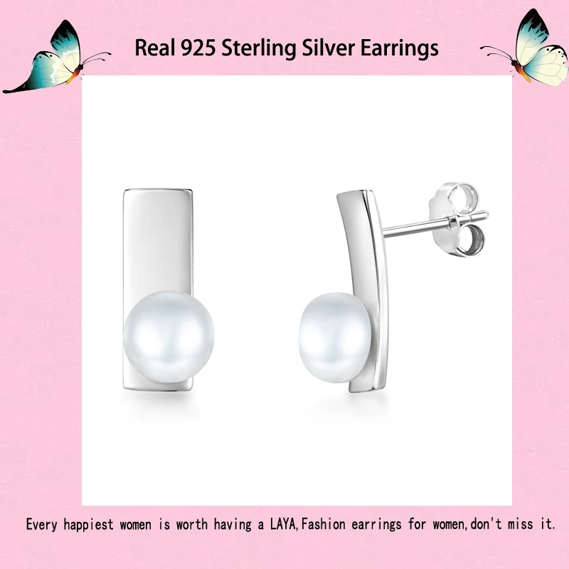 Laya натуральный пресноводный жемчуг хлеб серьги для женщин 925 стерлингового серебра простой фактурой индивидуальные серьги-клипсы, хорошее ювелирное изделие