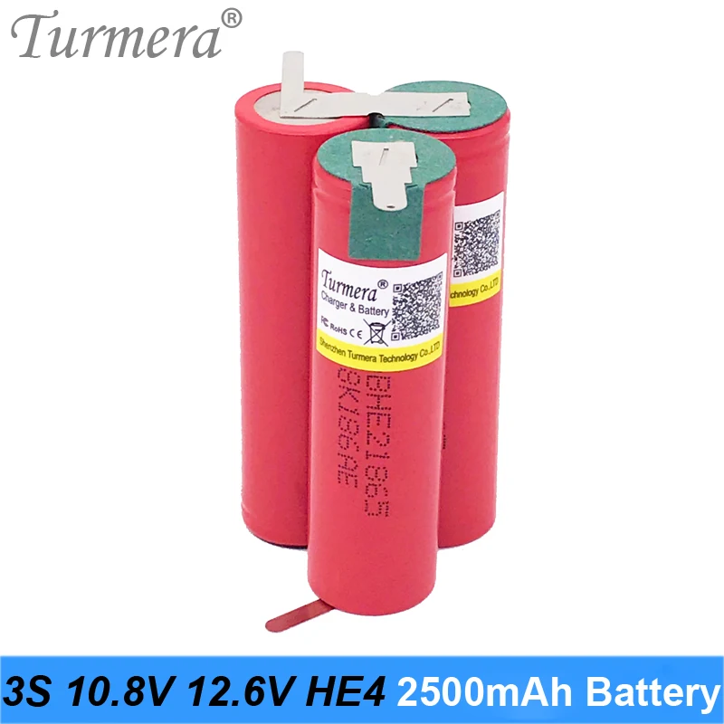 Turmera 18650 HE2 25000 мАч, 5000 мАч, 20A сварочная батарея 3S 12,6 V 4S 16,8 V 5S 21V 6S, алюминиевая крышка, 25В INR18650-HE2 для 18В отвертка батарея Применение
