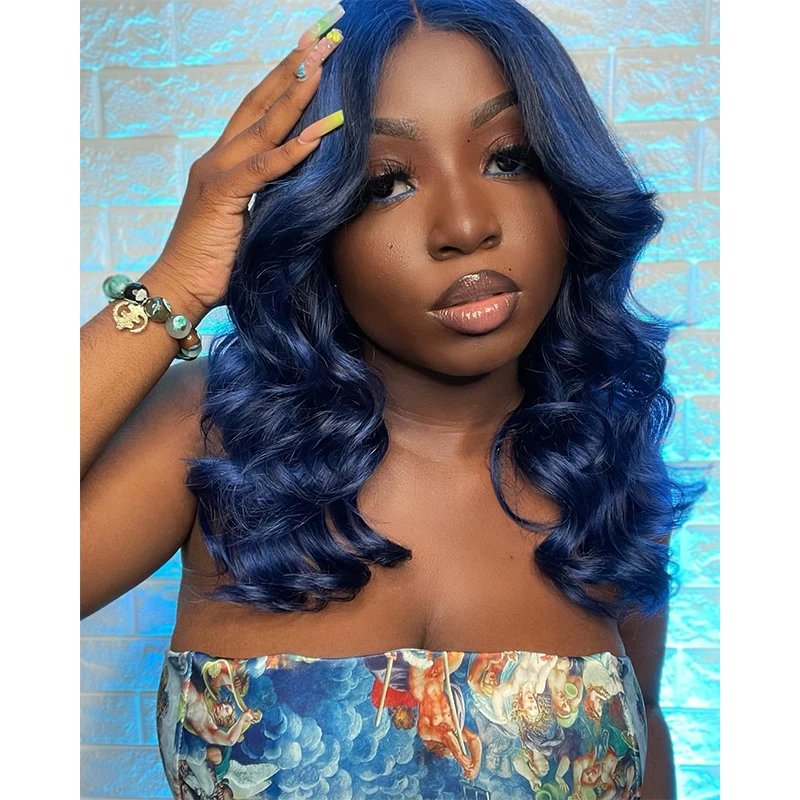 Парик из натуральных темно-синих волос 13x4 на сетке, короткий парик с застежкой Боб, волнистый, бразильский, предварительно выщипанный парик T-образной формы с прямым вырезом, 250%
