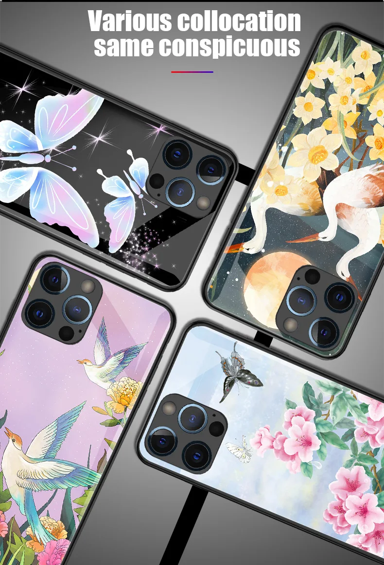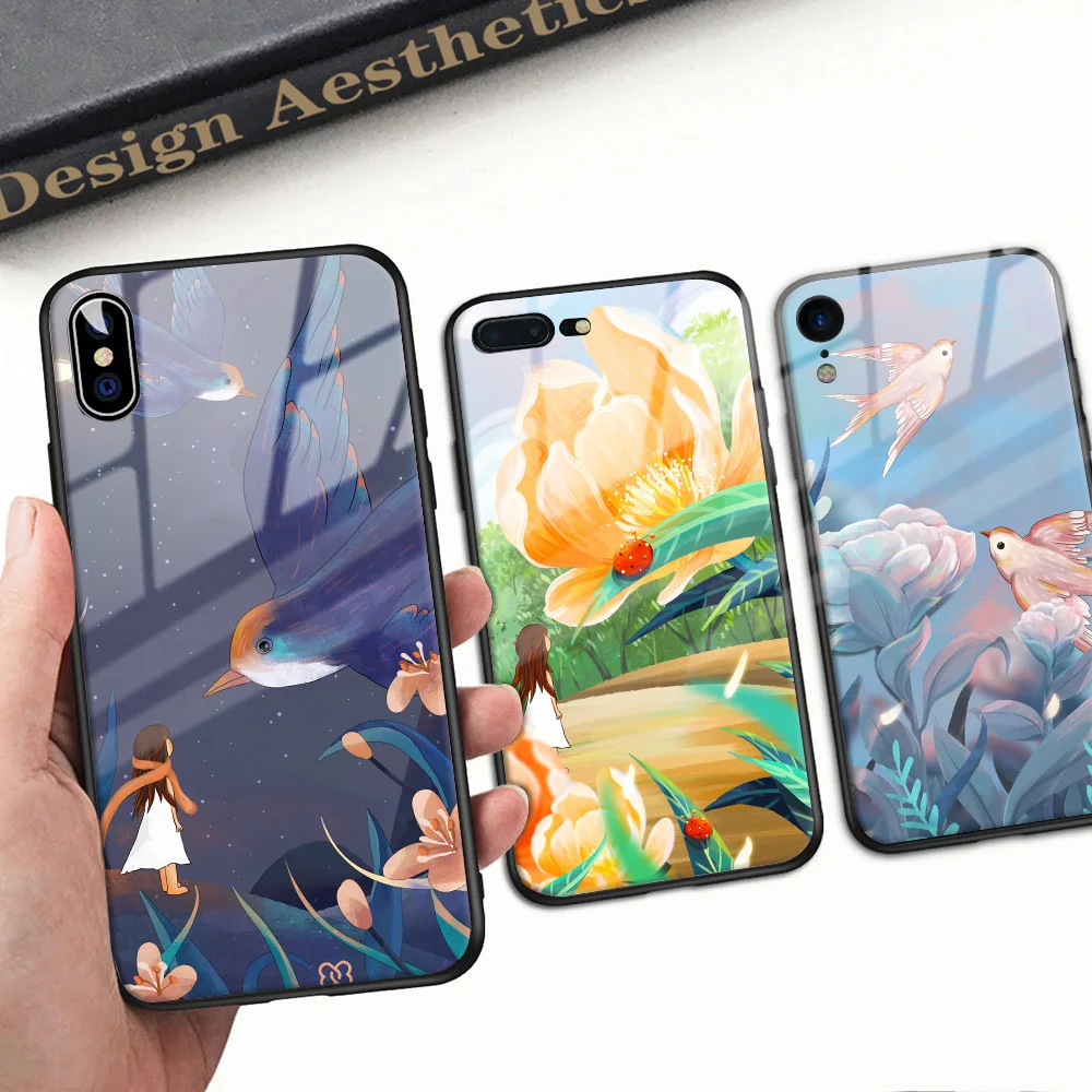 Чехол для телефона с бабочками и цветами для Iphone 11 12 Pro Max X XR XS Max 8 7 6 6s Plus, чехол для телефона, закаленное стекло
