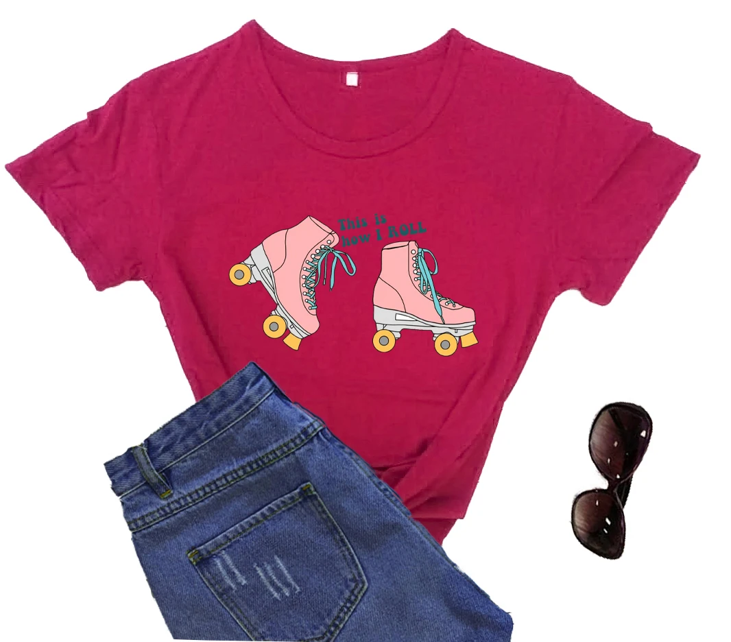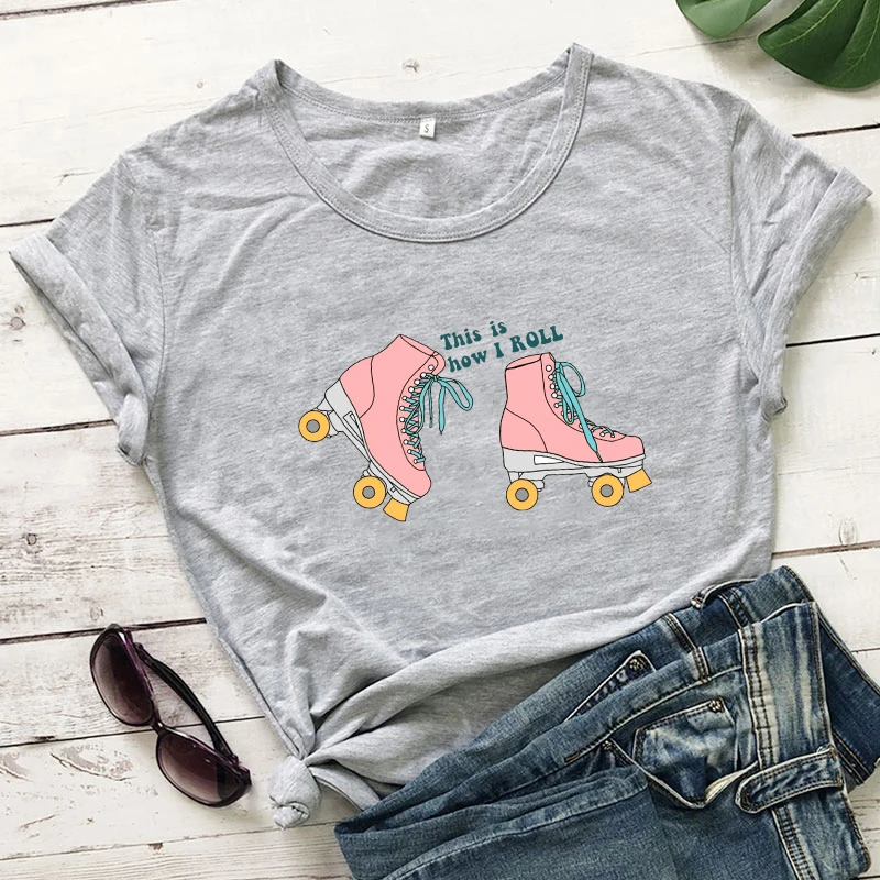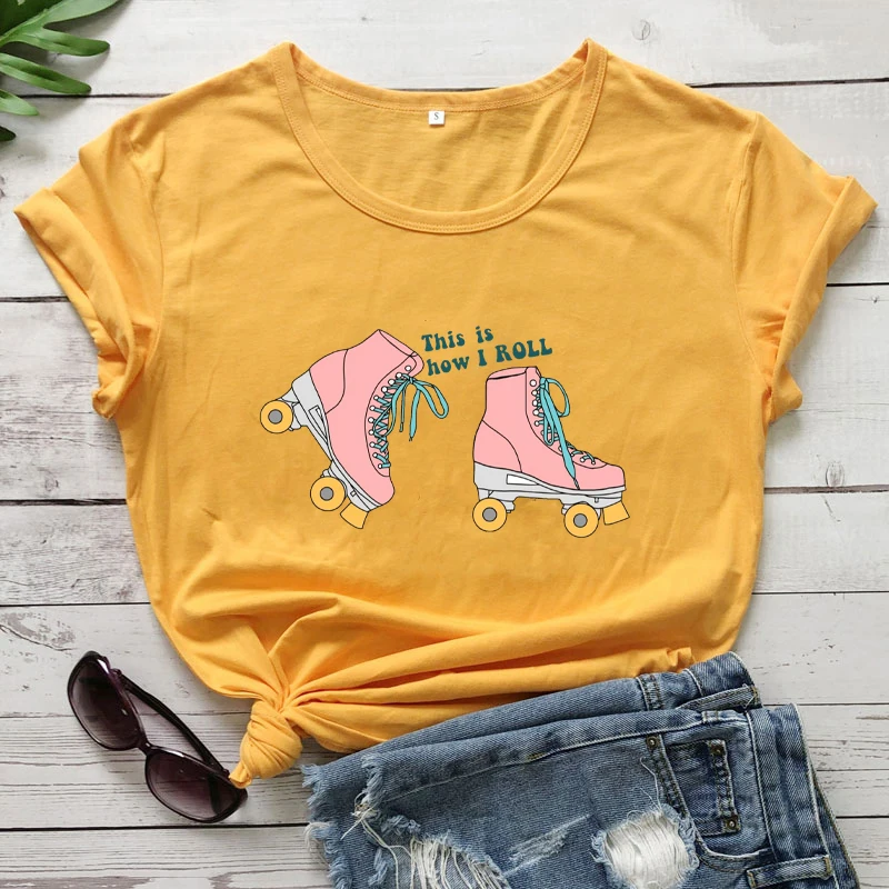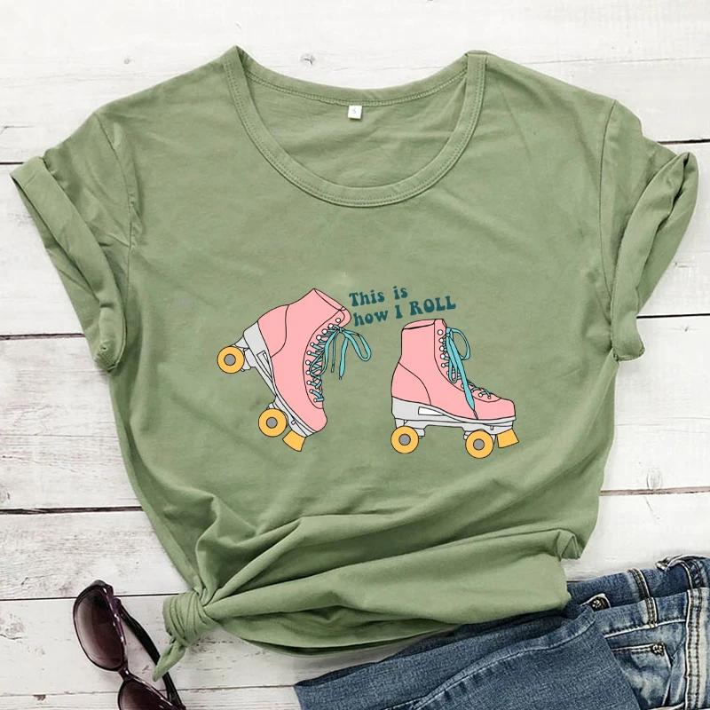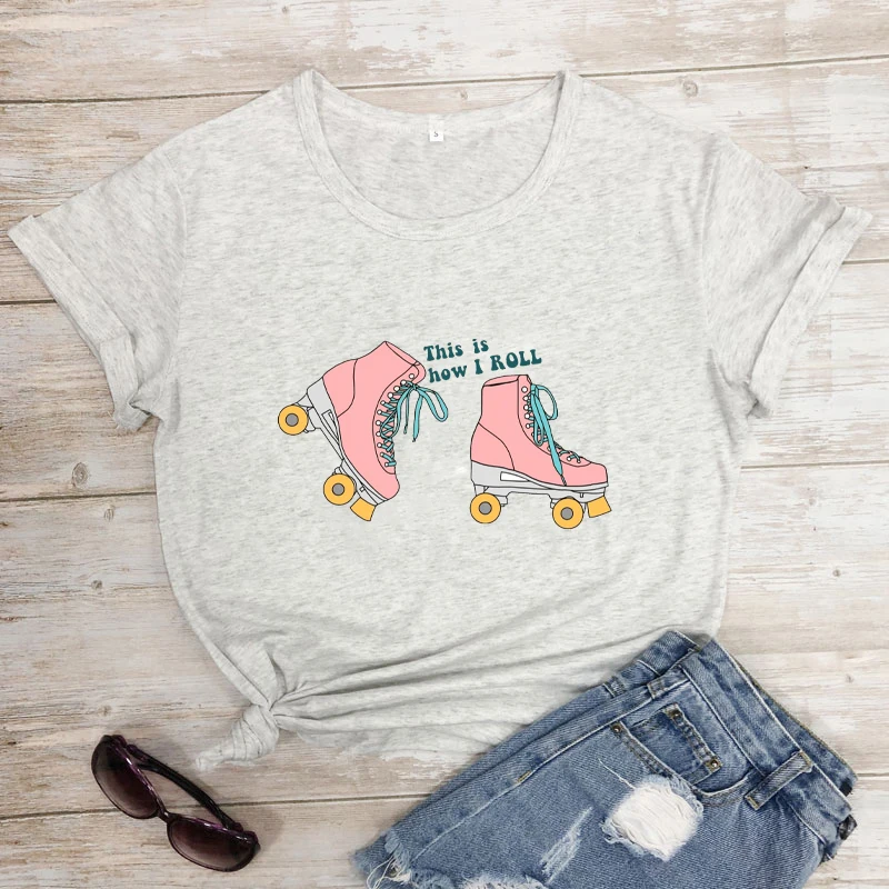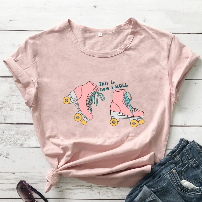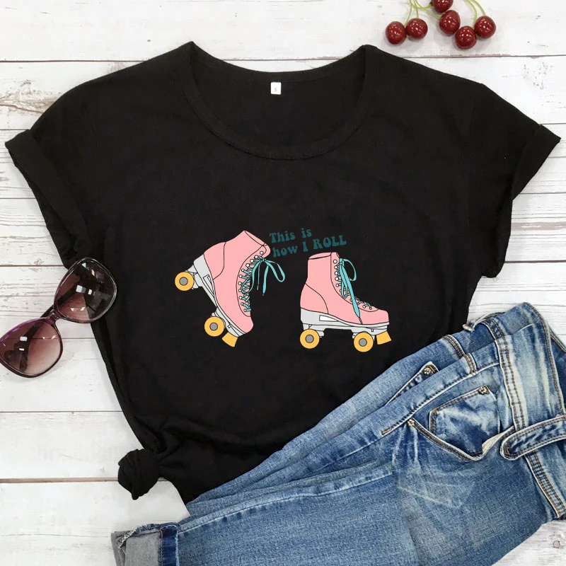 Футболка женская в уличном стиле, смешная рубашка из чистого хлопка, с рисунком как я ролл, модная повседневная Винтажная футболка для катания на коньках
