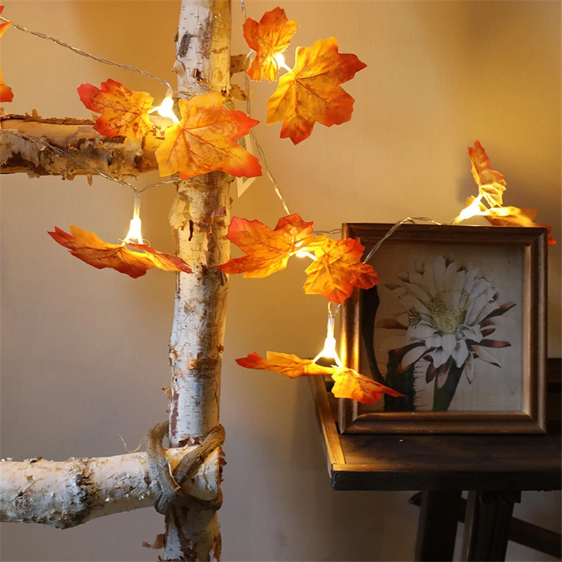 Искусственные кленовые листья, гирлянда, светодиодный Сказочный светильник s для Рождественского украшения, Осенний струнный светильник, свадебные праздничные вечерние украшения
