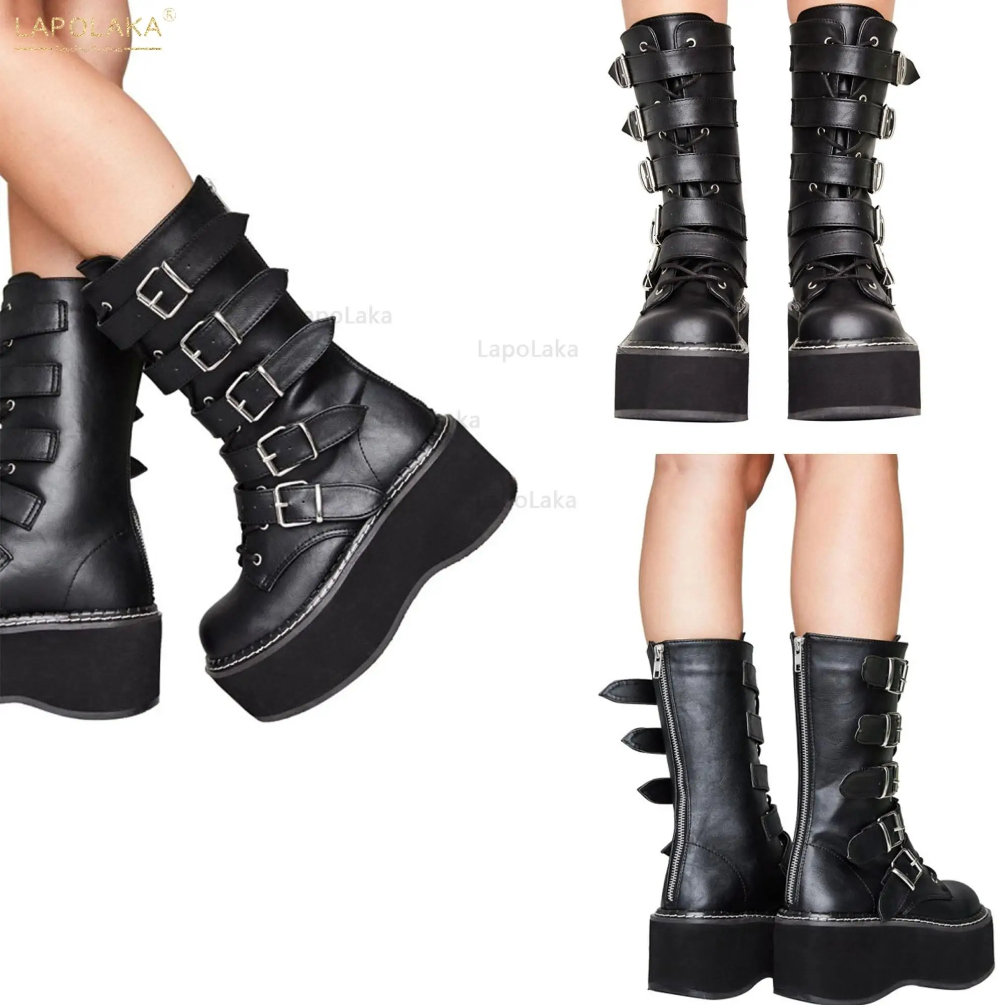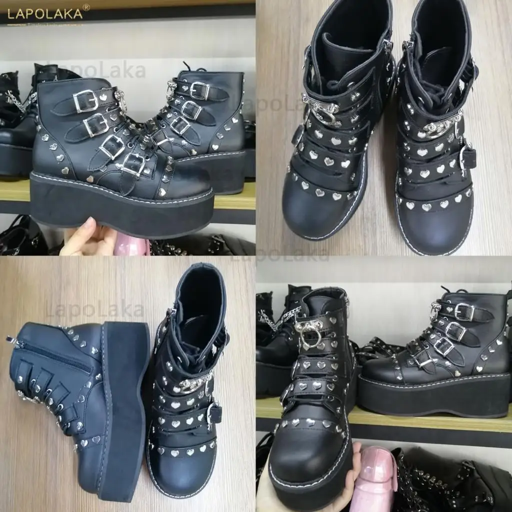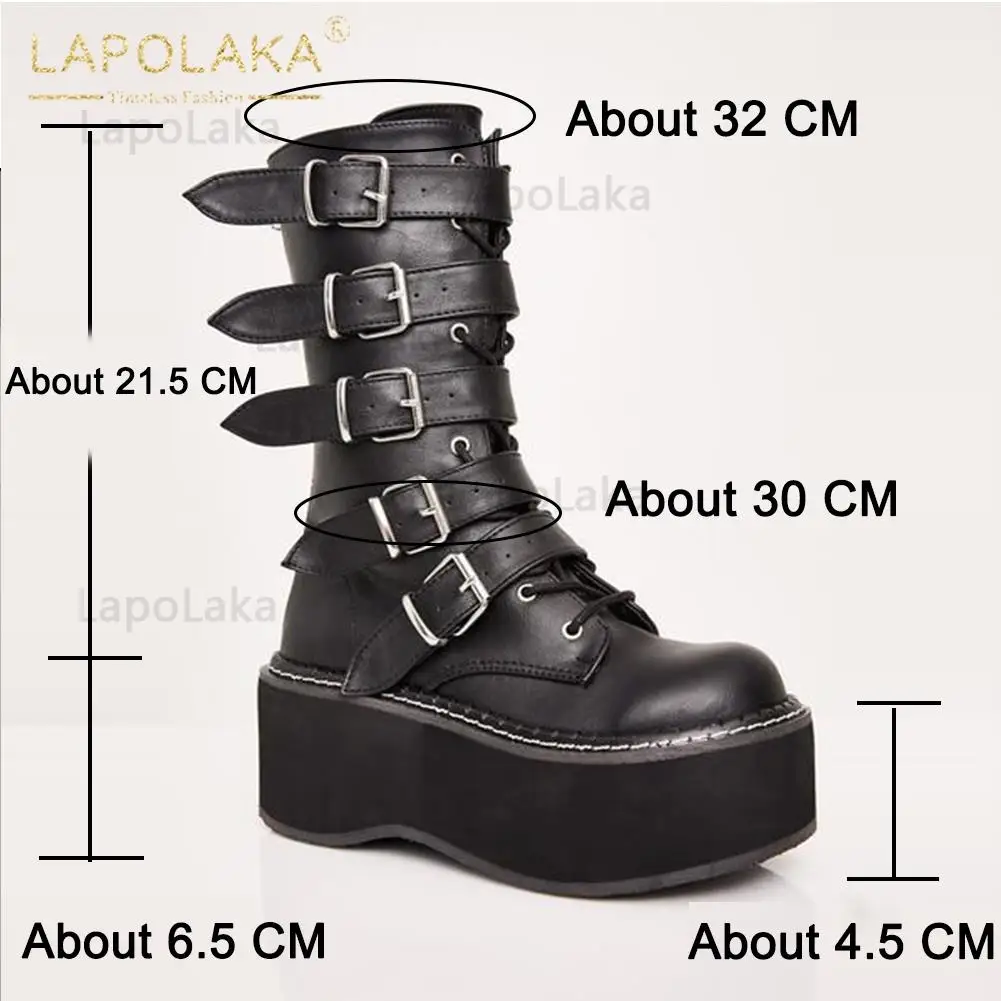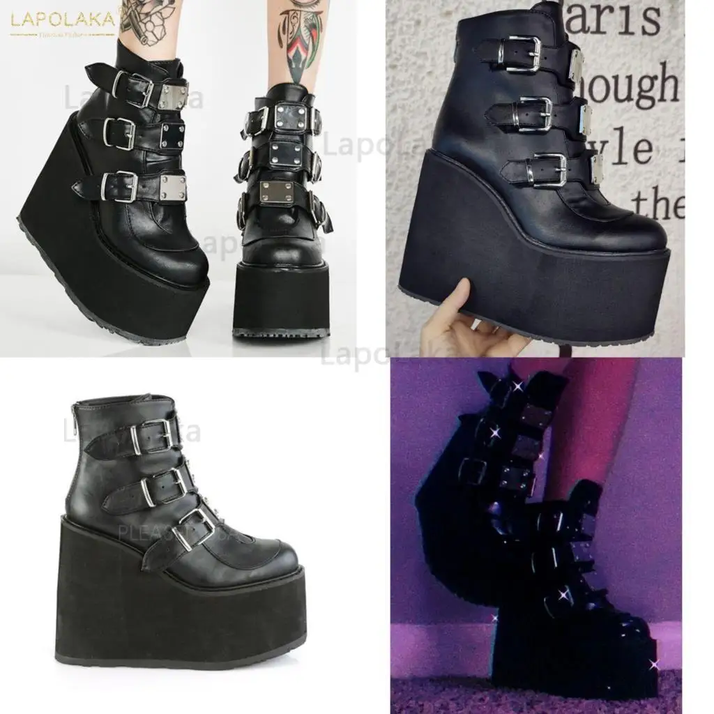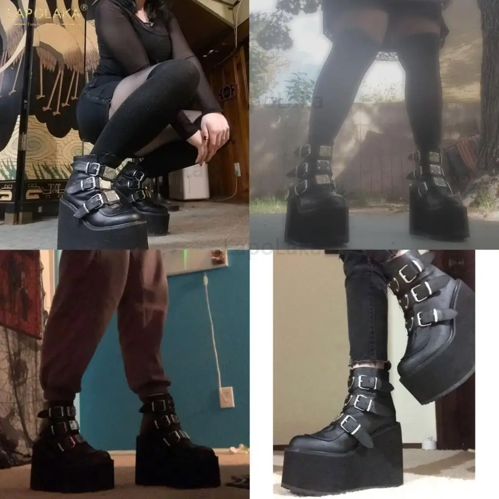 Женские мотоциклетные ботинки, черные ботинки на платформе и высоком каблуке, большой размер 34-50, 2021