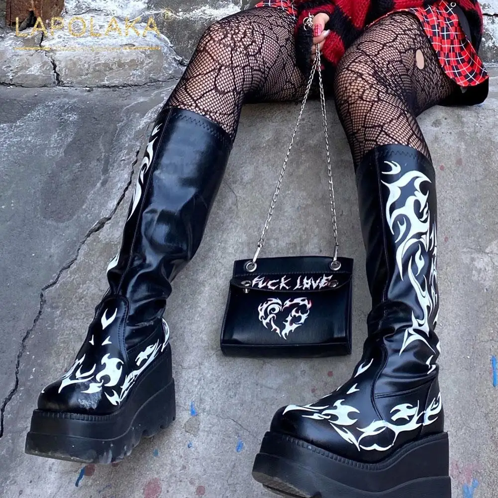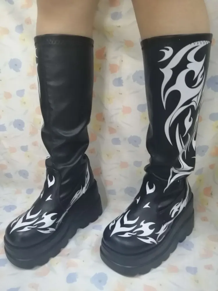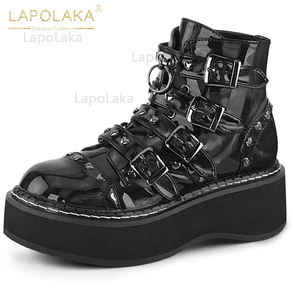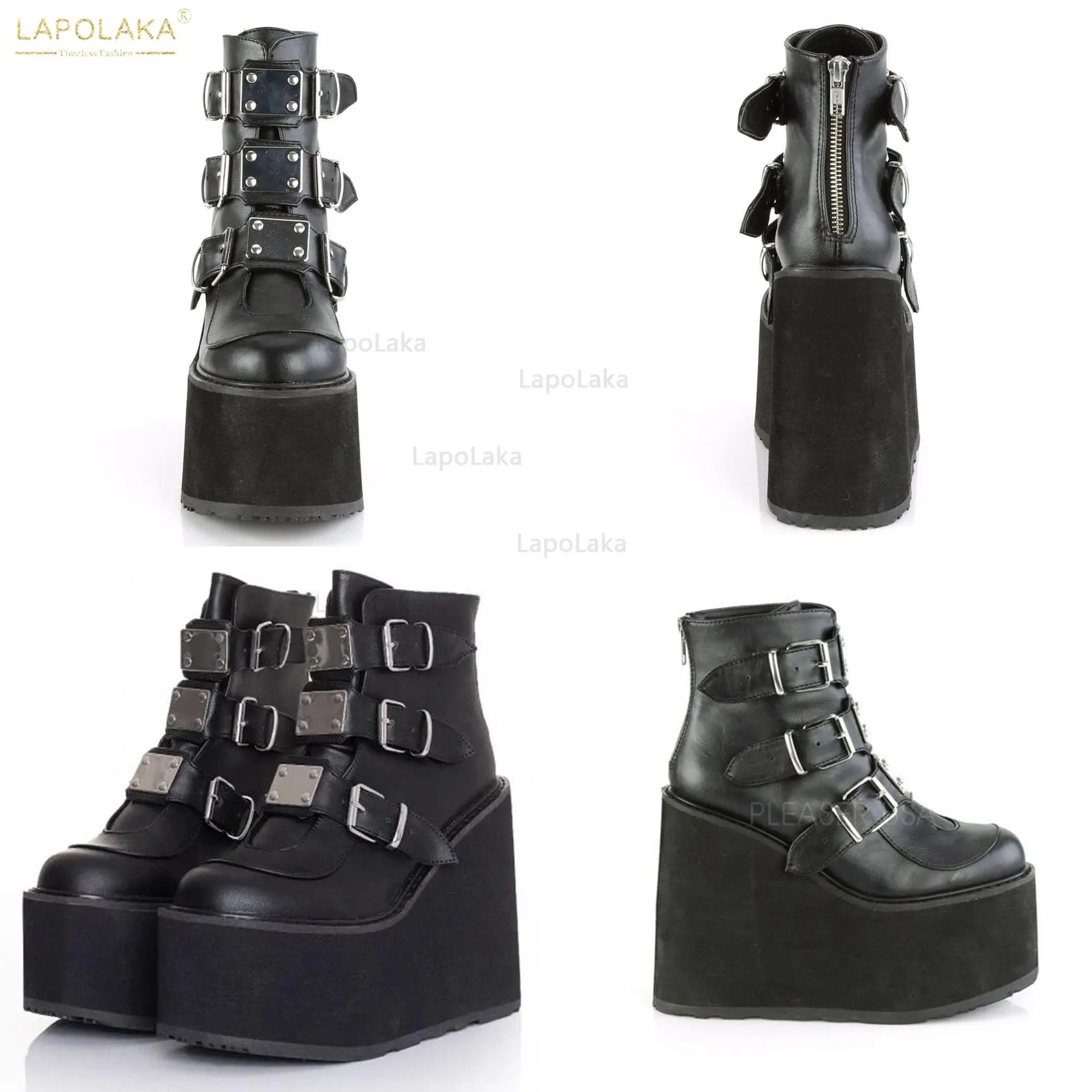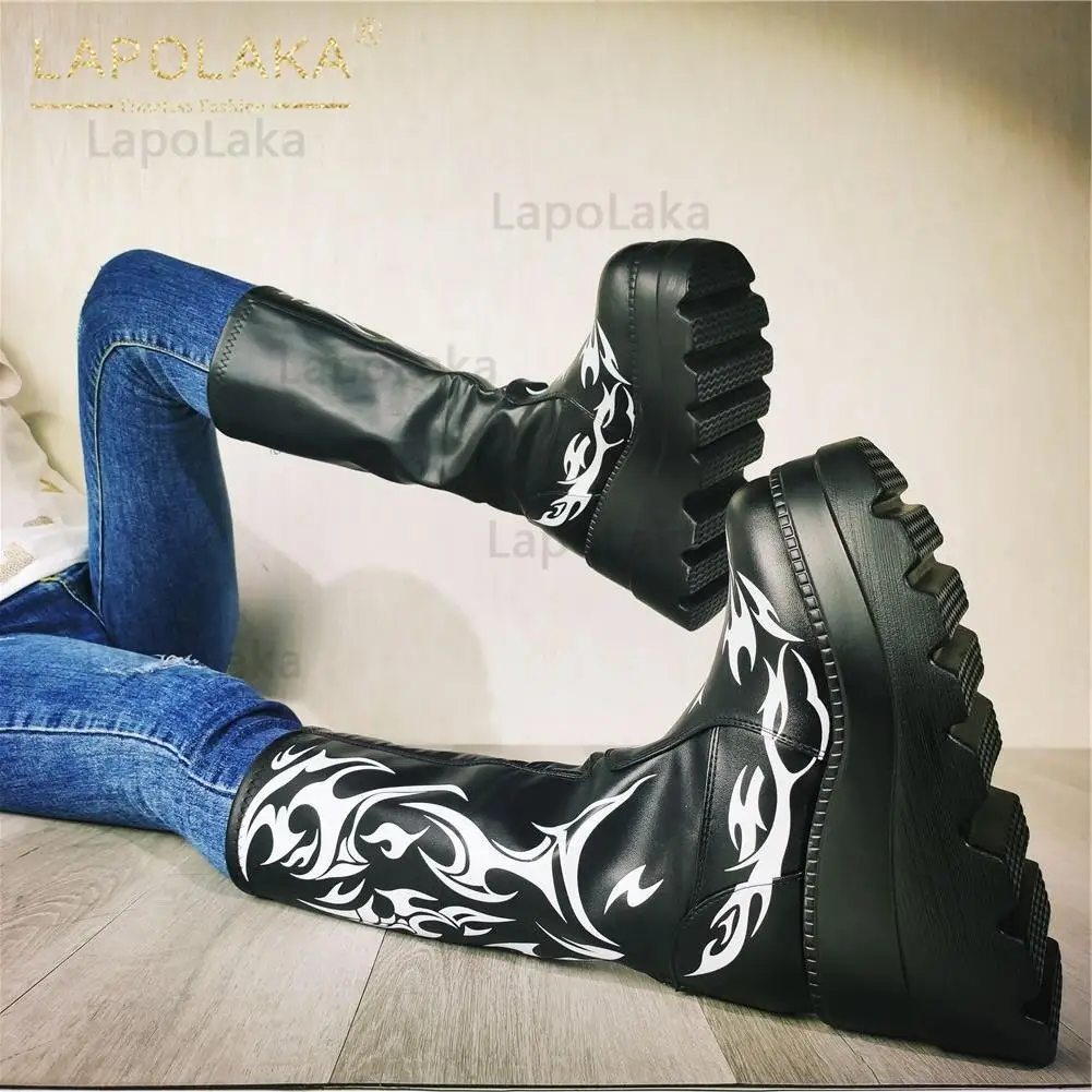 Женские мотоциклетные ботинки, черные ботинки на платформе и высоком каблуке, большой размер 34-50, 2021