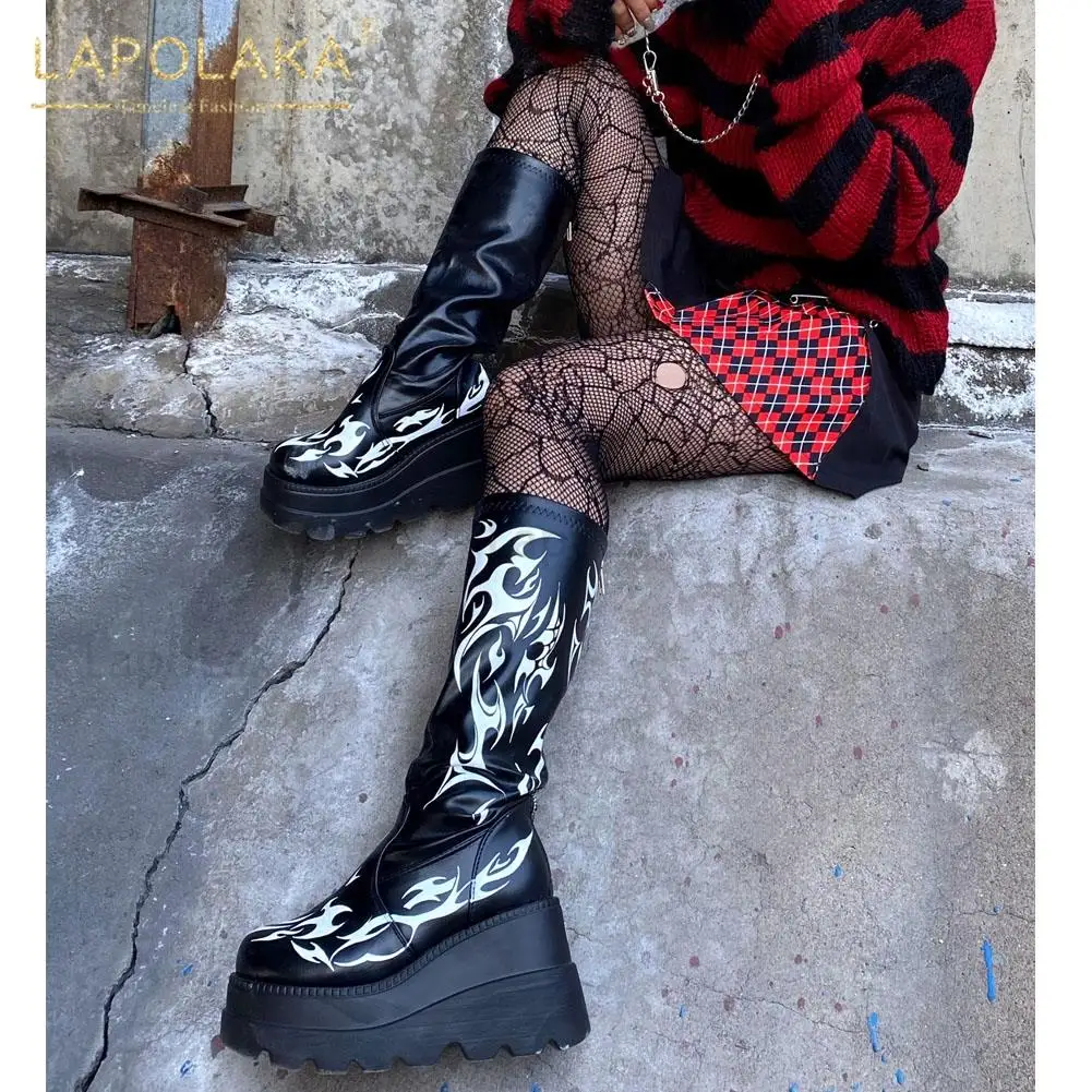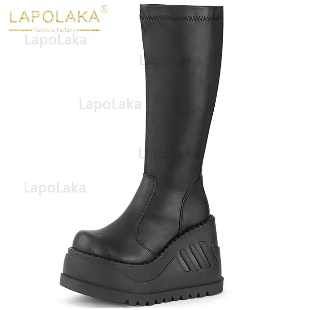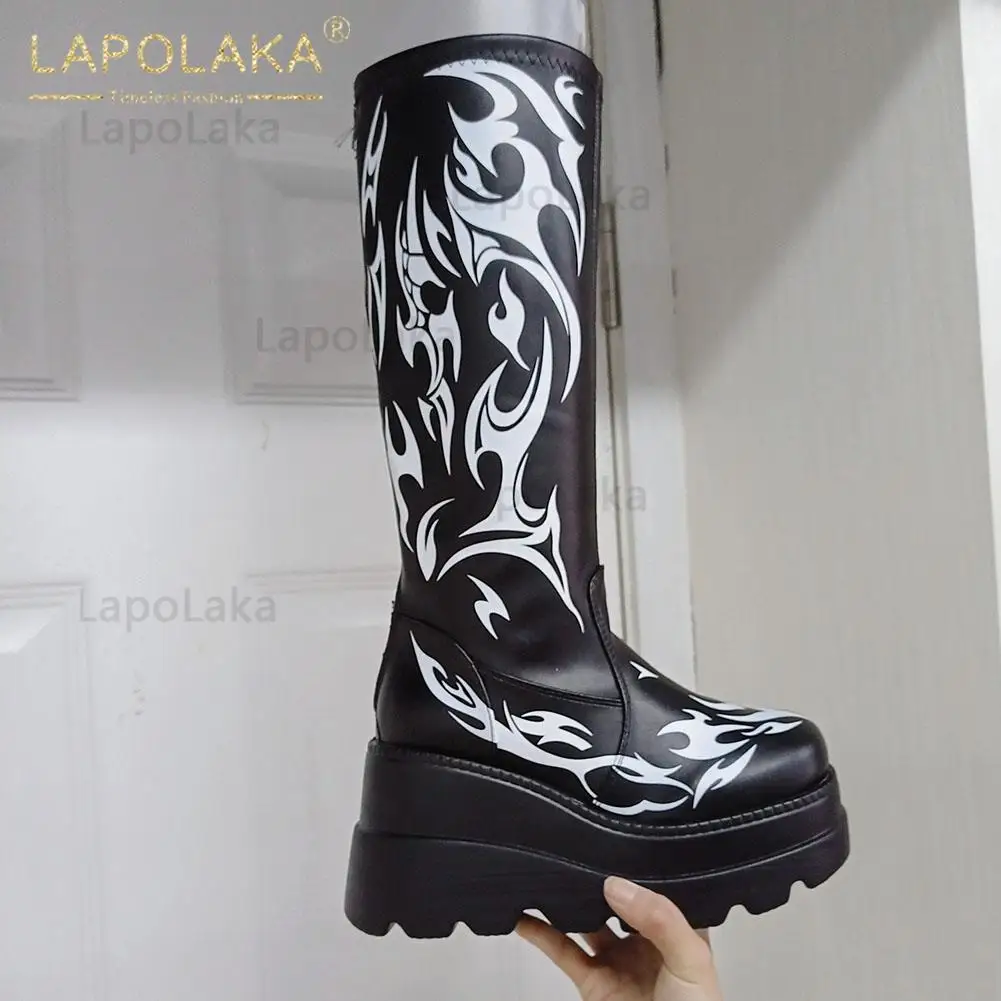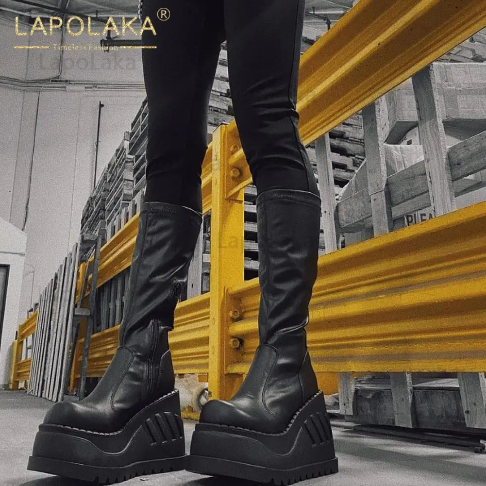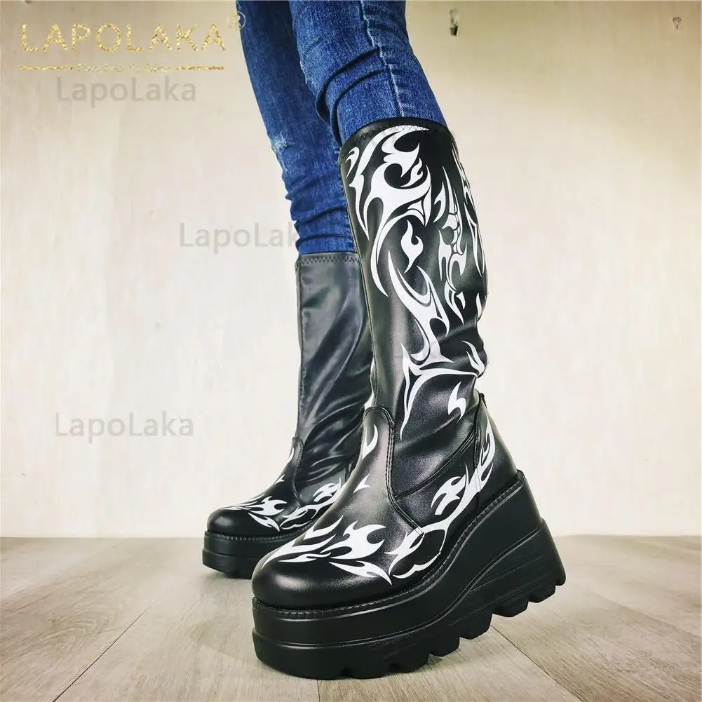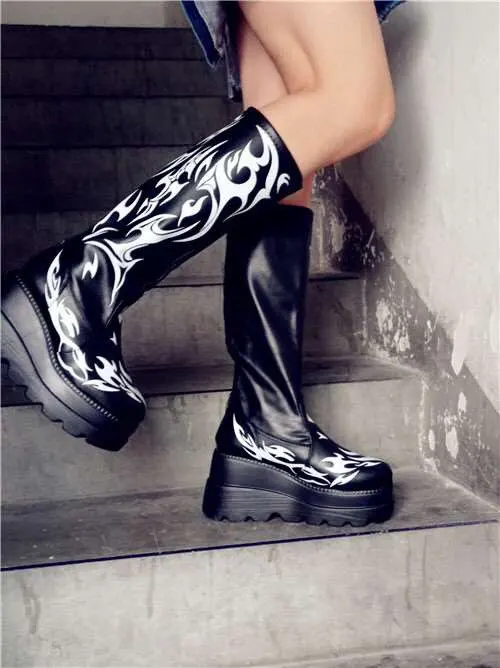 Женские мотоциклетные ботинки, черные ботинки на платформе и высоком каблуке, большой размер 34-50, 2021