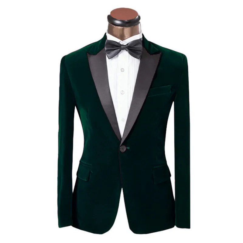 Заостренными лацканами темно-зеленый велюровое пальто Slim Fit мужской костюм мужсой бархатный для торжественных случаев Свадебные смокинги для жениха 2021 (куртка + брюки)