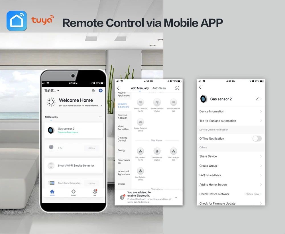 Датчик утечки газа MULO TUYA, Wi-Fi датчик утечки газа для умного дома