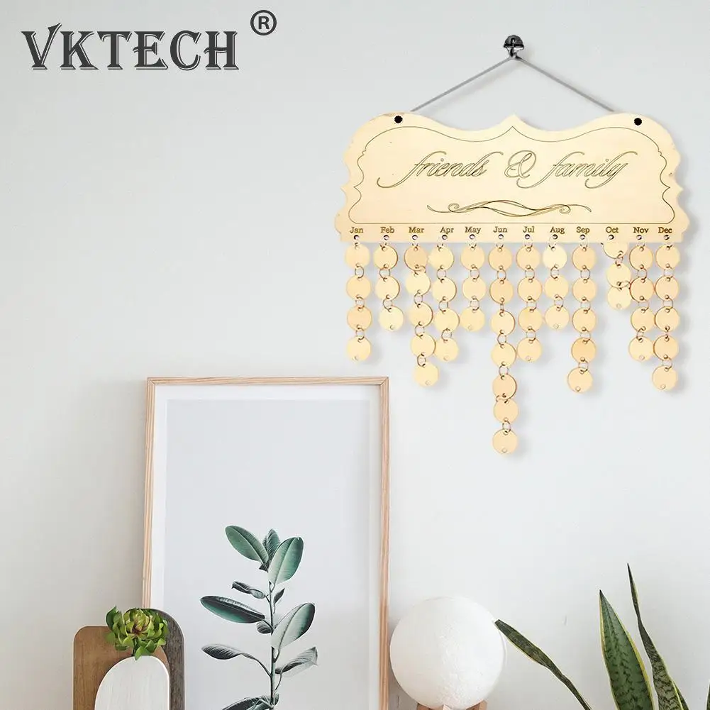 Календарь, деревянная доска с напоминанием на день рождения и бирками, украшение для дома, браслет с трекером на годовщину, настенное украшение с календарем