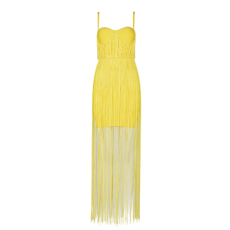 Платье-трапеция на тонких бретелях, с кисточками, с открытой спиной