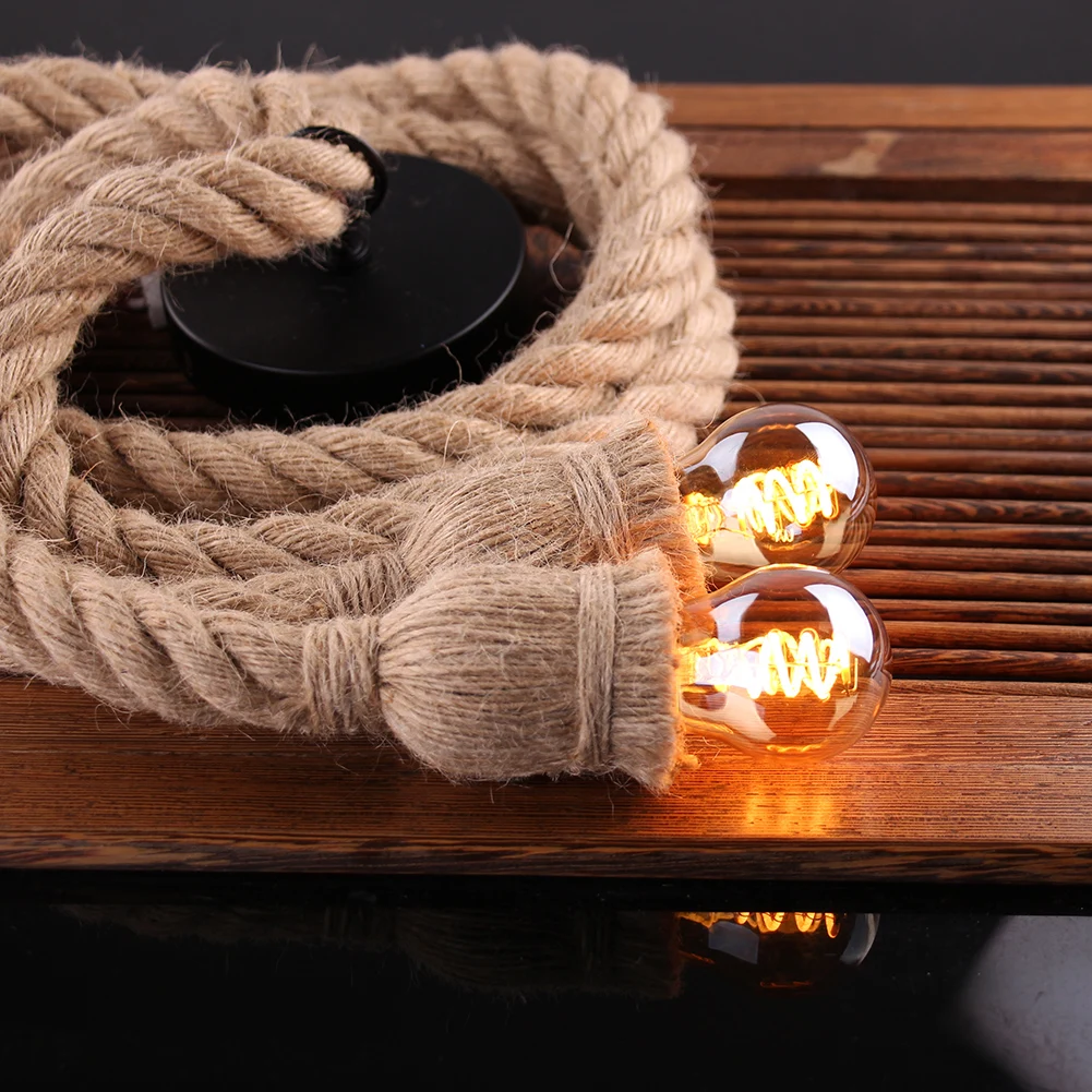 Подвесные светильники в стиле ретро из пеньковой веревки, подвесные светильники в стиле индастриал, лофт, винтажные, длинные, одинарные, Двойные головки, ротанговая Подвесная лампа, 100 см, 200 см, светодиодные лампы Эдисона