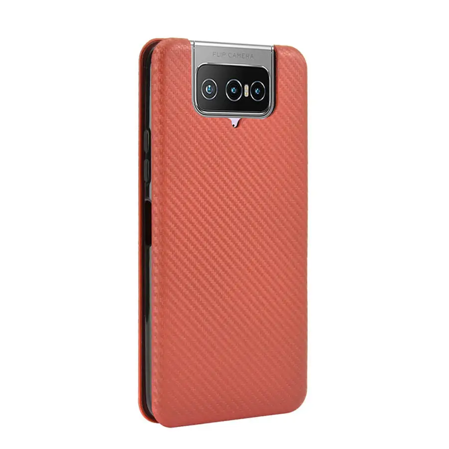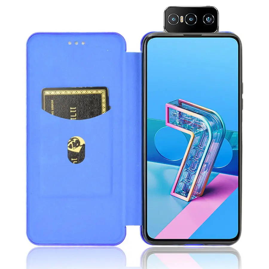 Кожаный чехол-книжка из углеродного волокна для ASUS Zenfone 7 Pro ZS671KS / Zenfone 7 ZS670KS / ROG Phone 3 ZS661KS / ROG Phone 3 Strix / ROG Phone II ZS660KL / ROg Phone 2 ZS660KL