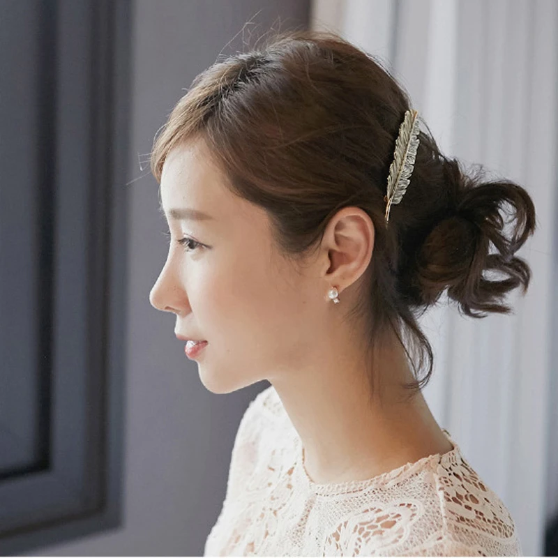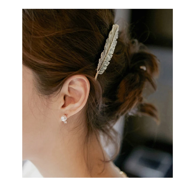 Модная металлическая заколка для волос в форме листа и пера, заколка-пряжка для волос, заколка для волос, головной убор для женщин и девочек, аксессуары для укладки волос, инструменты