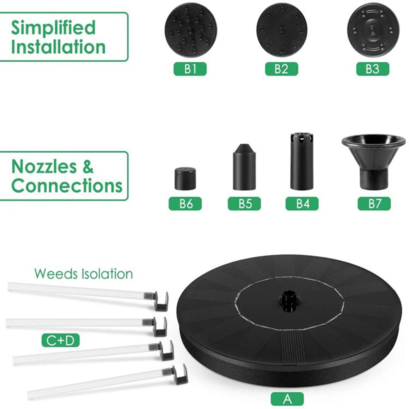 Несколько применений: этот новый солнечный pu mp фонтан идеально подходит для ванны птиц, аквариума, маленького пруда, бассейна, сада, патио, лужайки, циркуляции воды для кислорода. Принесите больше радости для вас.
