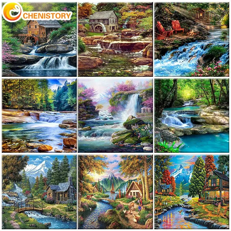 Пейзаж RUOPOTY для взрослых, мост, река и дом, набор для рисования ...