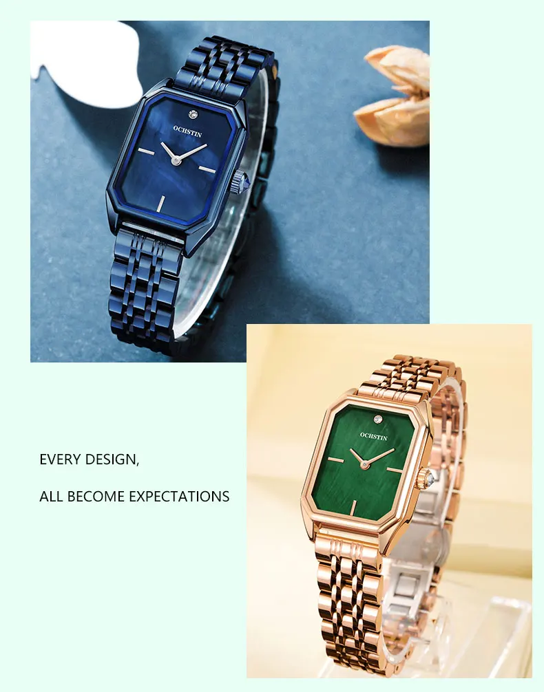 OCHSTIN часы женские ультра-тонкие женские кварцевые часы прямоугольный маленький зеленый топ роскошные брендовые модные Водонепроницаемый наручные 2021