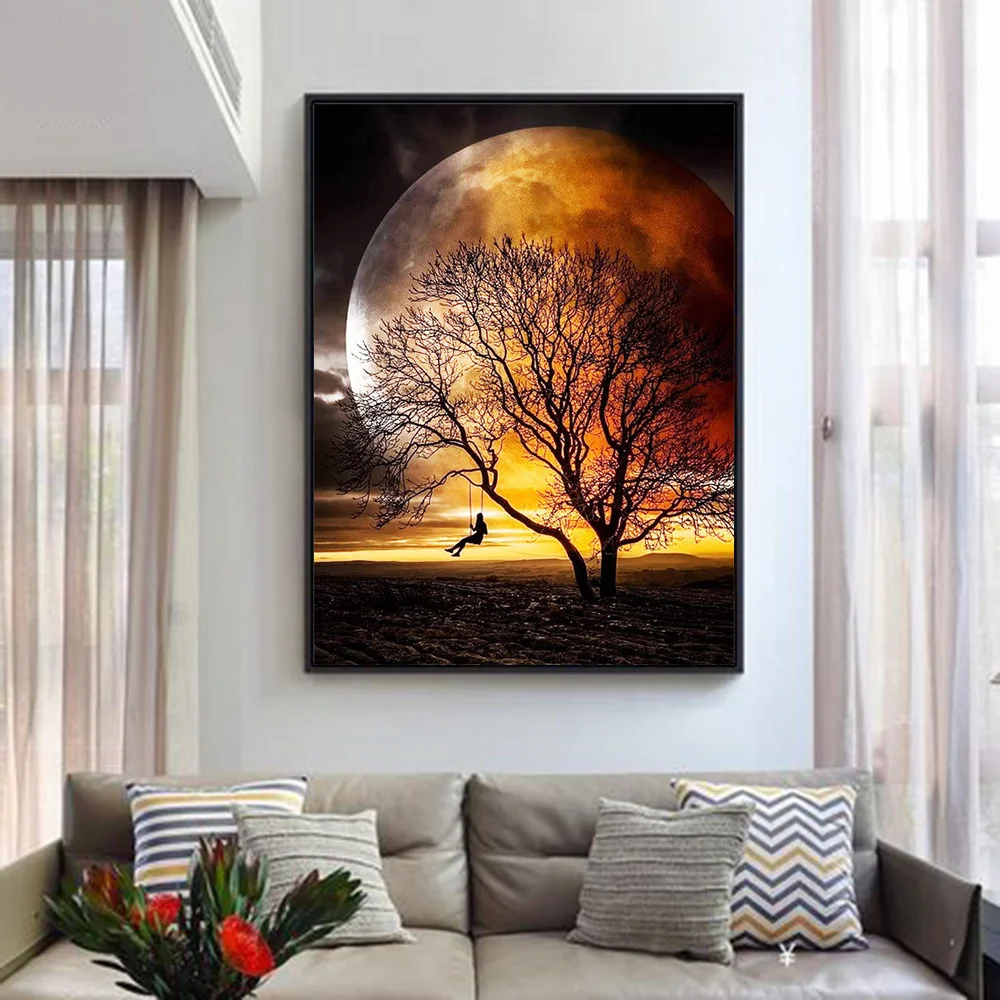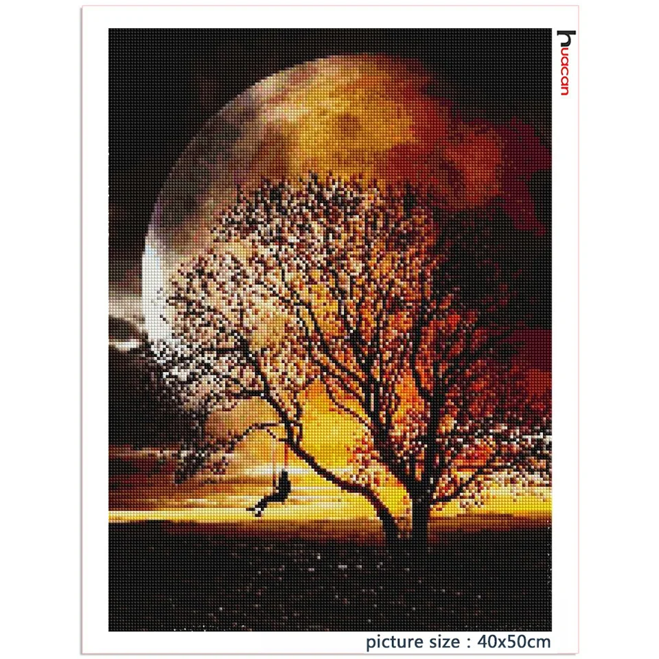 Huacan алмазов картина комплект Луна вышивка пейзажа мозаика ночной дерево Пейзаж вышивки крестом Настенный декор со стразами искусство