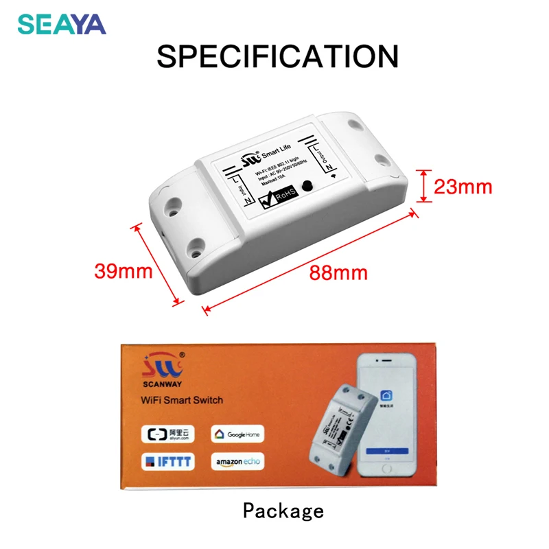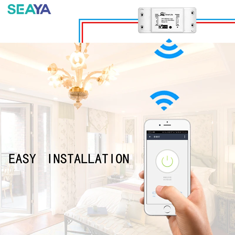 Умный выключатель света SEAYA, универсальный выключатель с Wi-Fi, работает с приложением, работает с Alexa Google Home, IFTTT