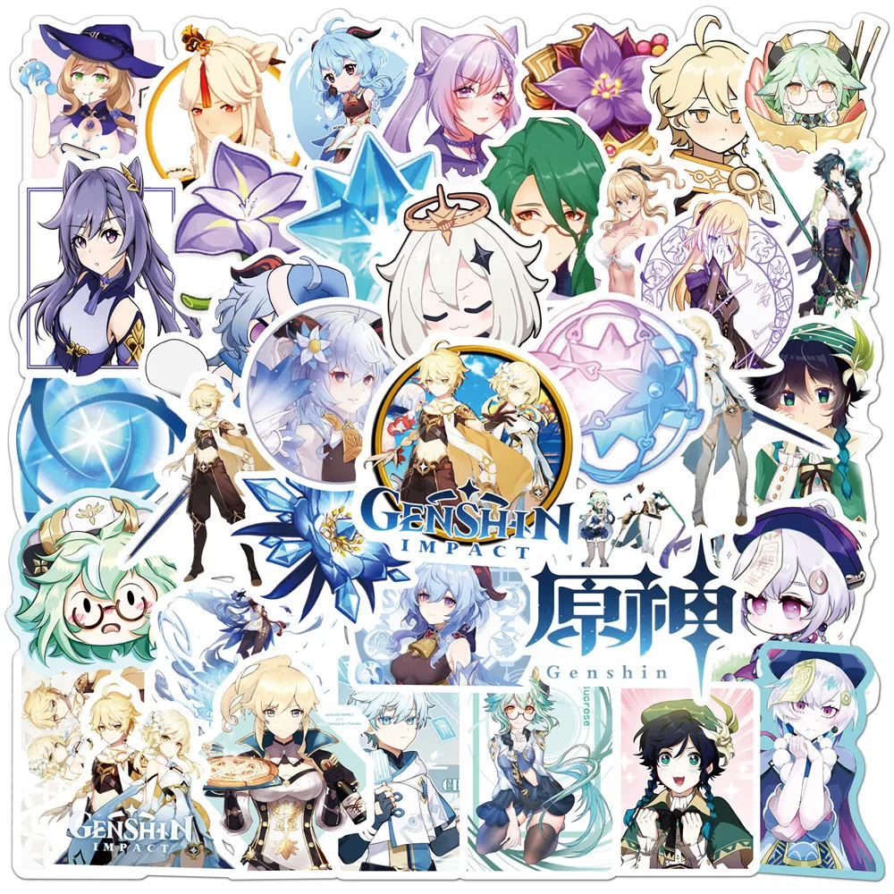 50 шт. аниме Genshin ударная наклейка для ноутбука, телефона, багаж...