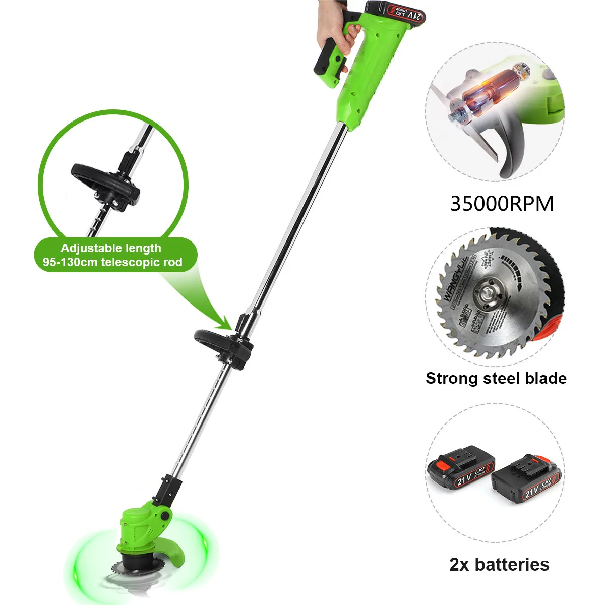 Садовый триммер для травы, с 2 аккумуляторами, 21 в, 3000 мАч