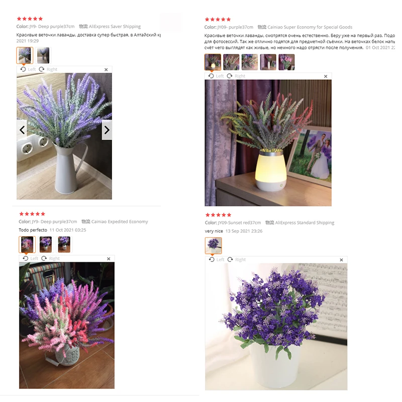 Очень красивые цветы, идеальный размер. Они могут быть разложены, чтобы сделать большое расположение, манипулировать, чтобы соответствовать тому, как вы хотите. Я люблю их, настоятельно рекомендую. Каждый стебель был в собственной пластиковой втулке в коробке, которая хранила их в хорошем состоянии во время доставки.