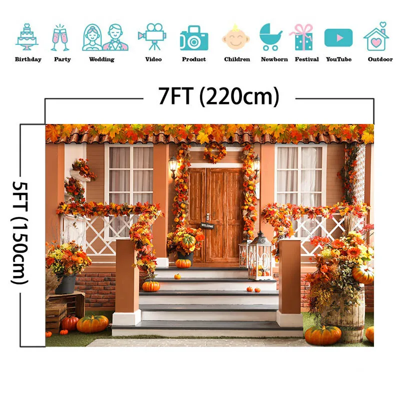 Фон для фотосъемки на Хэллоуин осень Тыква кленовый лист Паук Паути...