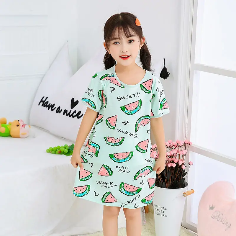 Модная летняя ночная рубашка для девочек, пижама, детская ночная рубашка с коротким рукавом, милая детская спальная одежда из 100% хлопка, на возраст 6, 8, 10, 12 лет