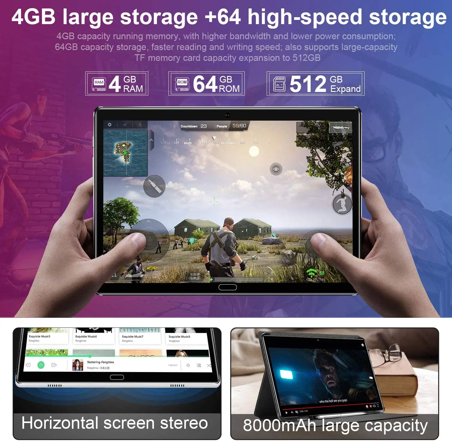 Новый 10,8 дюймов 4G Телефонный звонок 4 Гб + 64 Гб планшетный ПК десять Core 2K IPS 2560*1600 ЖК-дисплей Wi-Fi Bluetooth 5,0 Android 8,0 бренд AI планшетный ПК