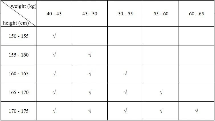 Размер: один размер подходит для роста: 150 - 175 см, вес: 40 - 65 кг, бедра: 36 - 52 см.
