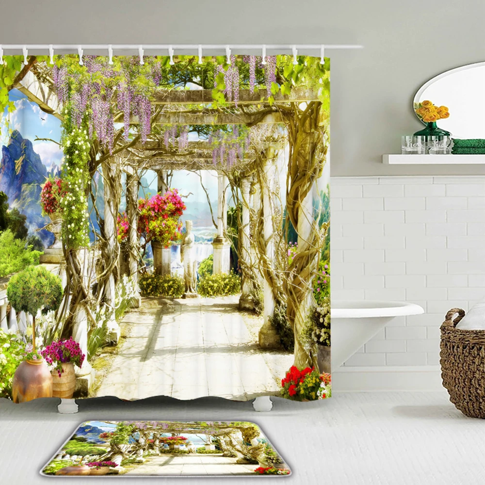Цветы Арка мост пейзаж Душ занавес набор Сельский Солнечный Ванна экран Печатный водонепроницаемый ванная занавес s нескользящий коврик