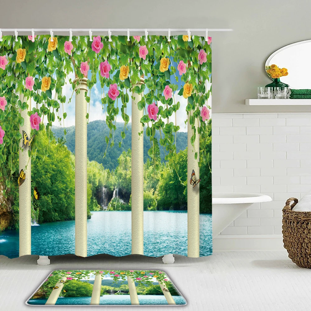 Занавеска для душа в европейском саду, занавеска для ванной комнаты...
