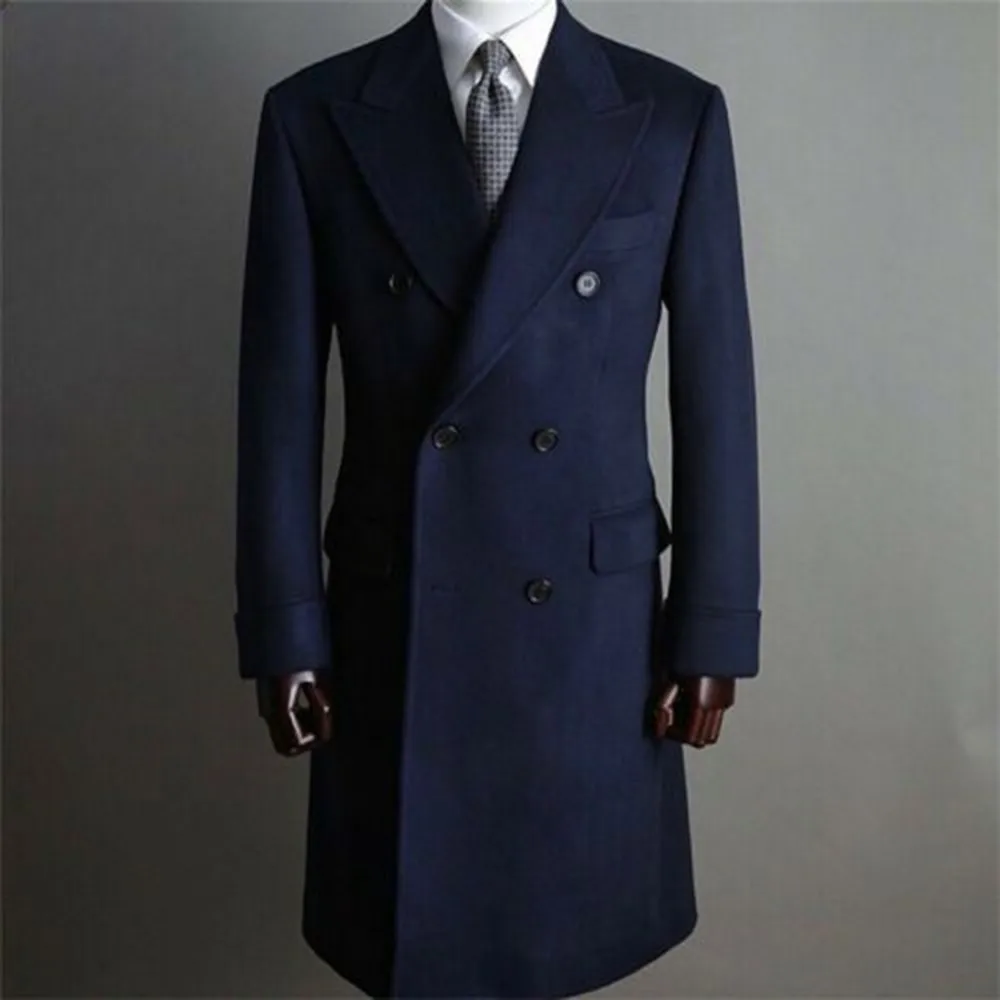 Красивый Темно-синие твид шерстяное двубортное пальто Slim Fit Блейзер сделанный на заказ с заостренными лацканами смокинги Тренч с Минни Маус Abrigos Hombre