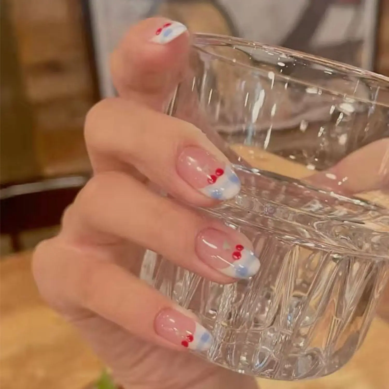 Накладные ногти квадратной формы, летние облака, звезды, узор, коро...