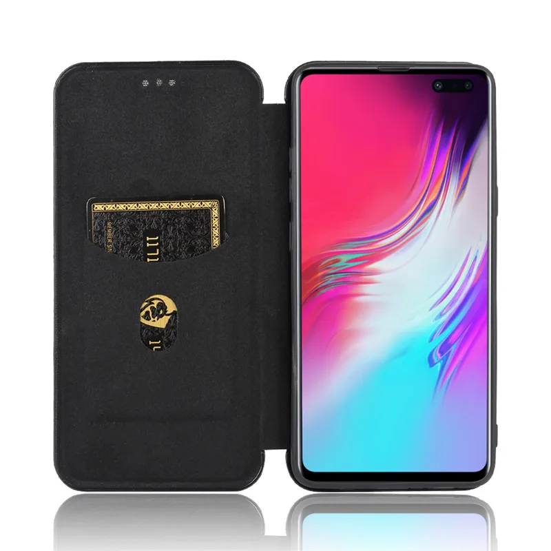 2021 для Samsung Galaxy S10 5G Модный чехол из углеродного волокна ПК жесткий держатель для карт тонкий кожаный чехол для Samsung S10 5G Бумажник Флип Co