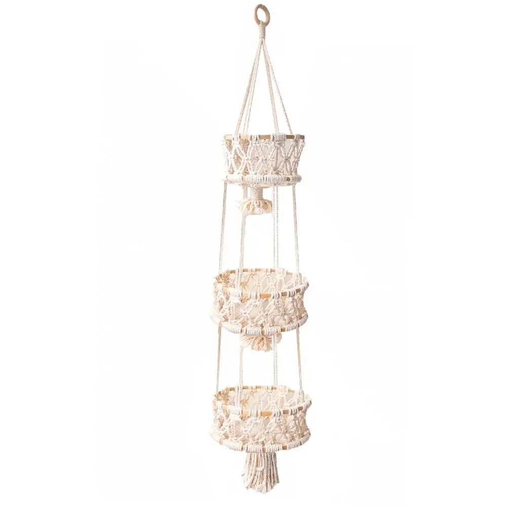 Трехуровневая подвесная корзина для макраме, украшение в стиле бохо...