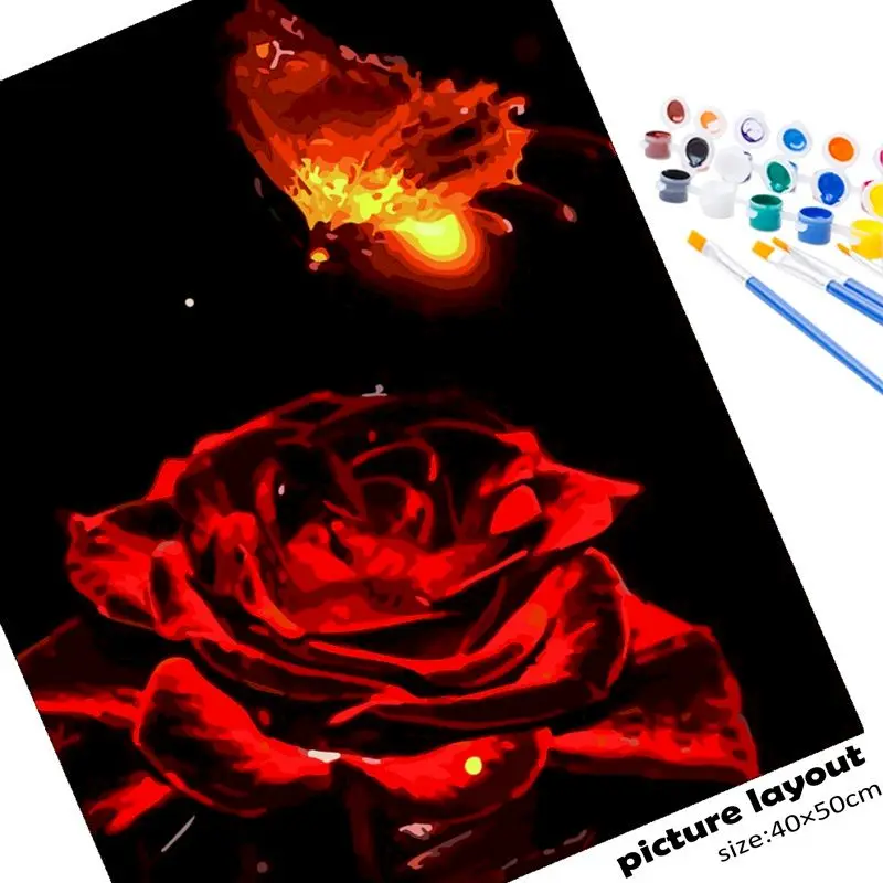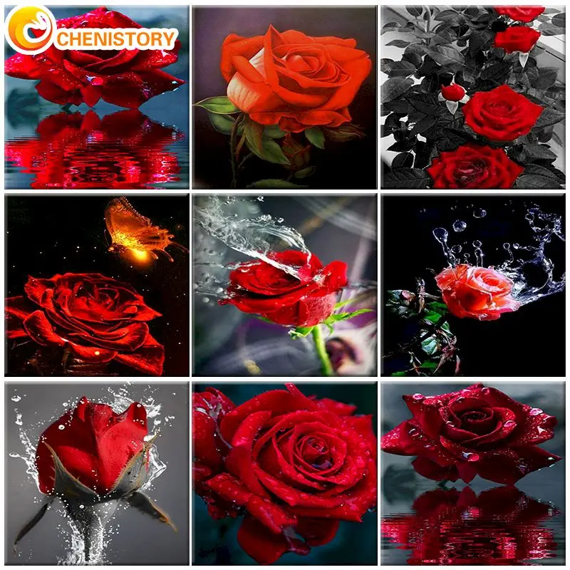 CHENISTORY Краски ing по номерам Роза "сделай сам" для взрослых Комплект Акриловые Краски на холсте с обрамленной росписью рисунок Раскраска по номерам домашний декор искусство